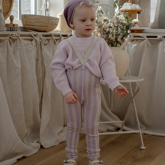 Silly Silas Footless Special Cotton Tights, Lavender X Cream striped