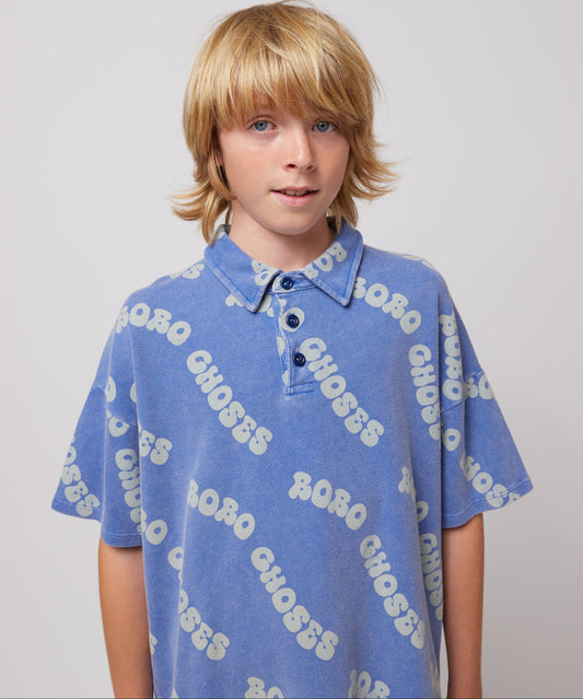 Wavy Bobo Choses all over Waffle Polo Shirt, Blue