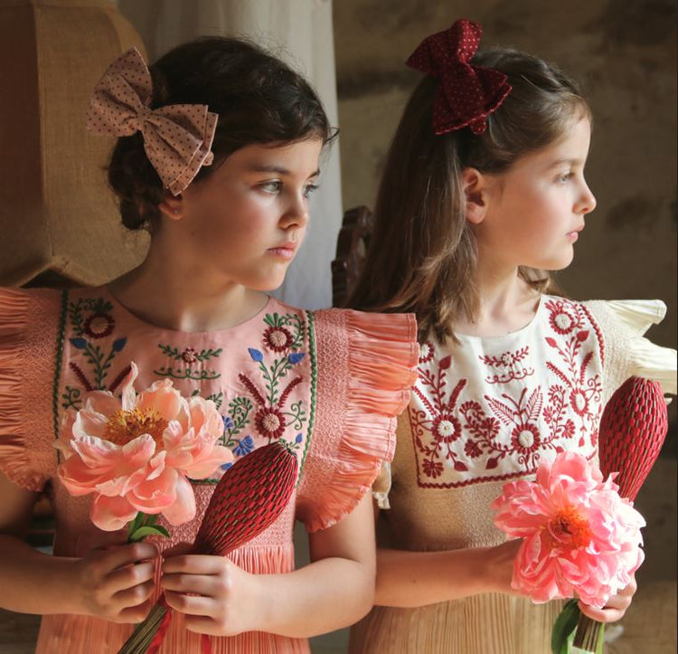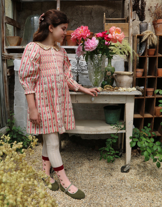 Farandole Flowers Socks with Hair Knot, Red & Pink