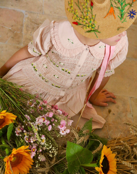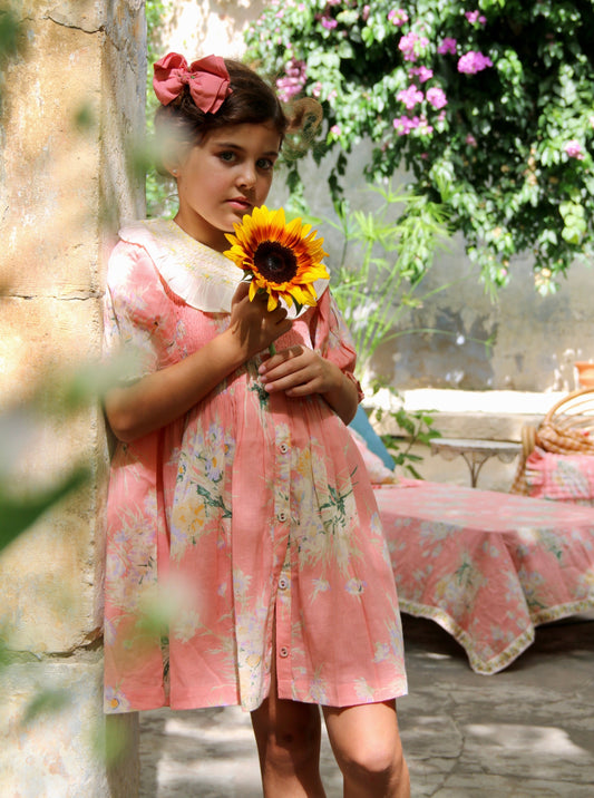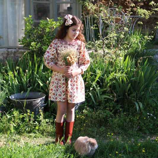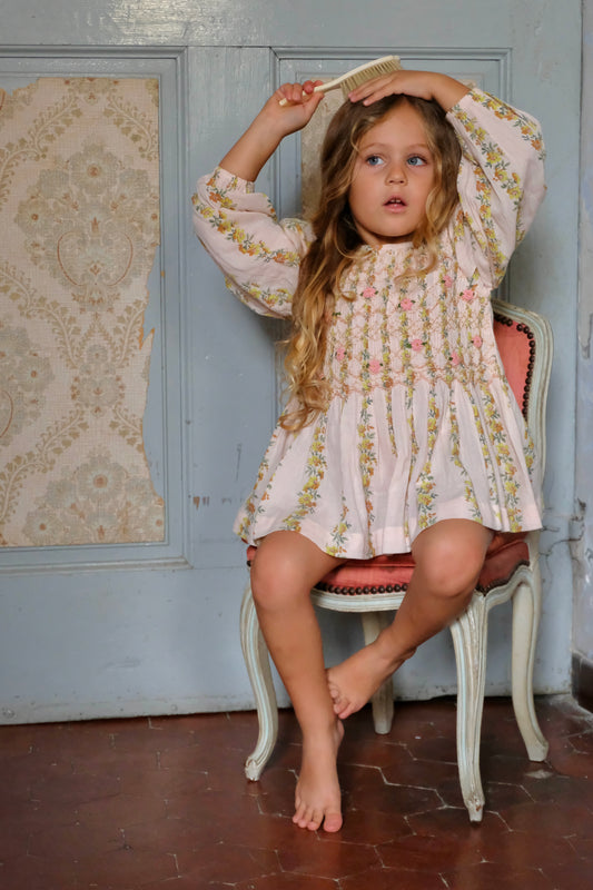 Blouse Smocks Long Sleeves, Farandole Flowers Print Crepe