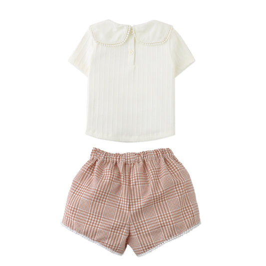 Baby Jurin Embroidered Top & Checkered Shorts Set, Multicolor