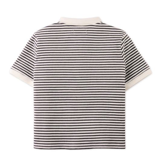 Boys Adrian Stripey Rib Jersey Polo, Off White