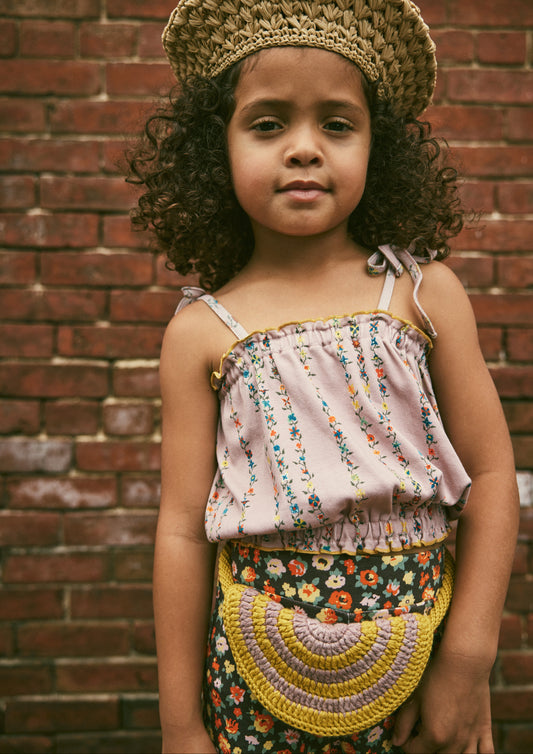 Ruffle Pedal Pusher, Plum Petal Little Botanica