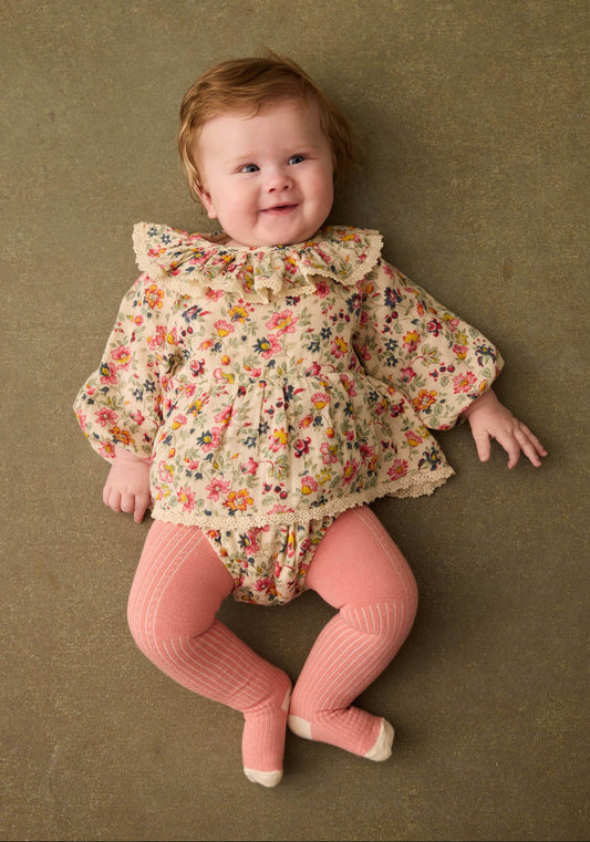 Baby Pierrot Onesie, Rosewood Bunny Meadow