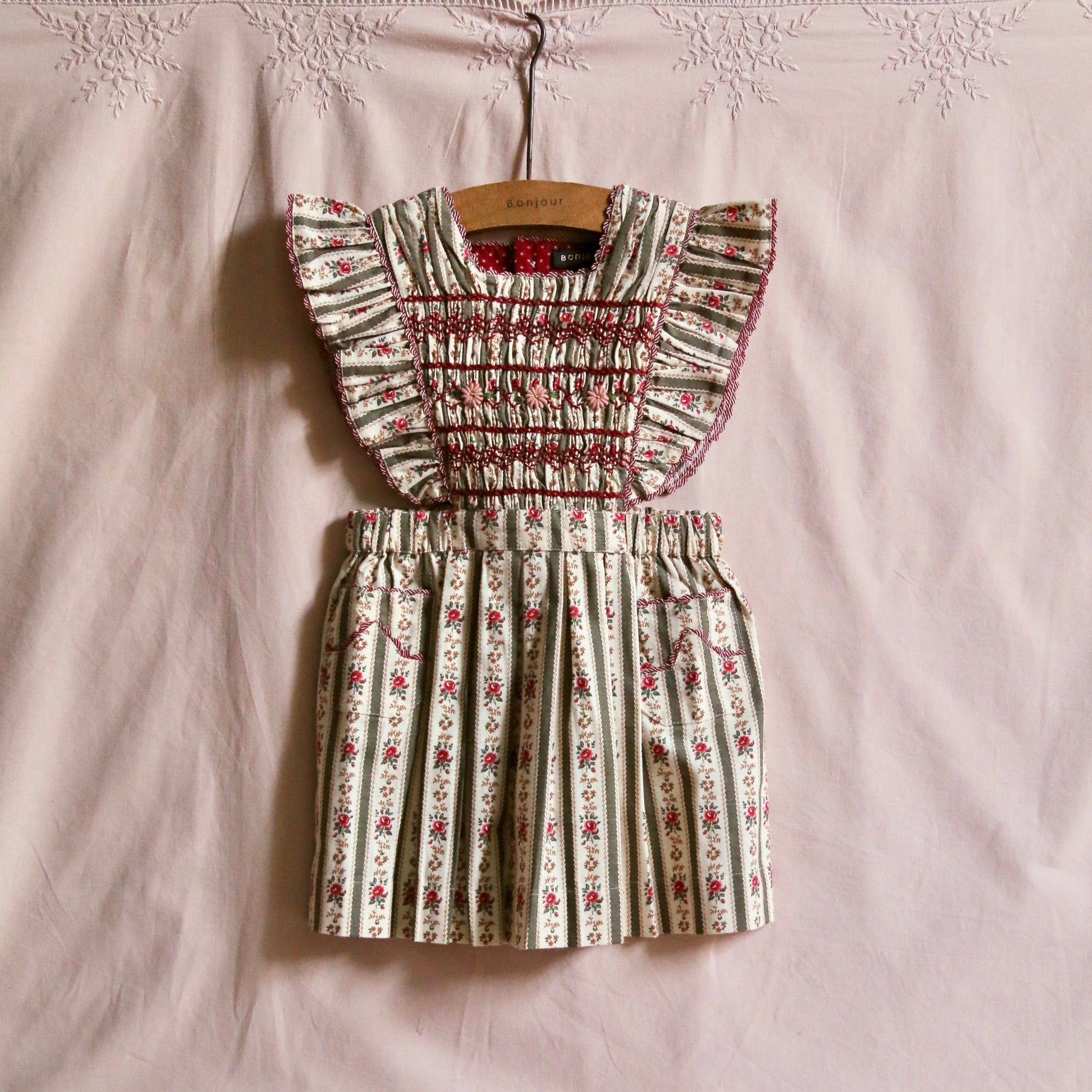 Bonjour AW25 : Apron Dress, Tapestry Khaki Stripe Print
