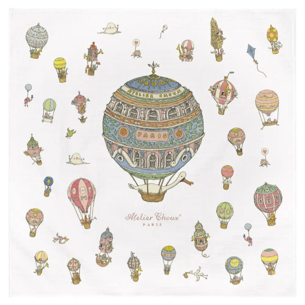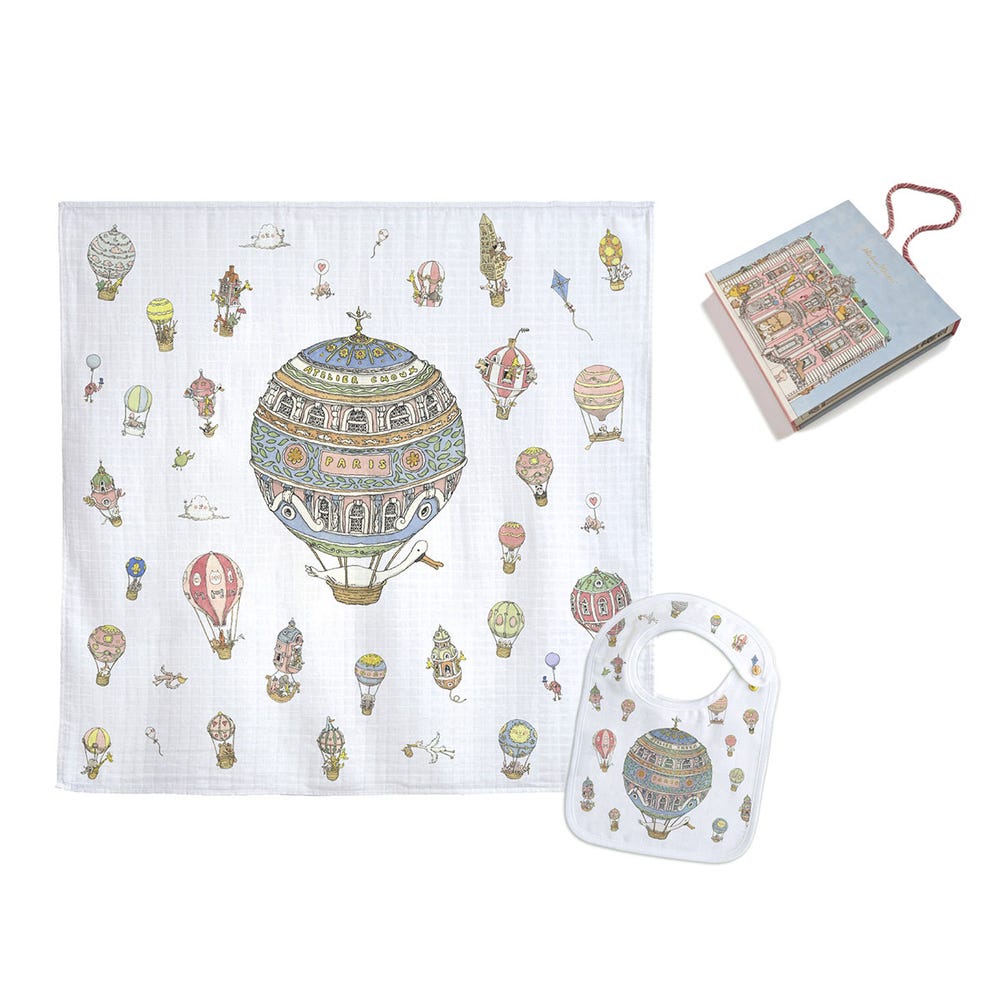 Atelier Choux Paris Organic Cotton Carrés & Bib Gift Set, Hot Air Balloons