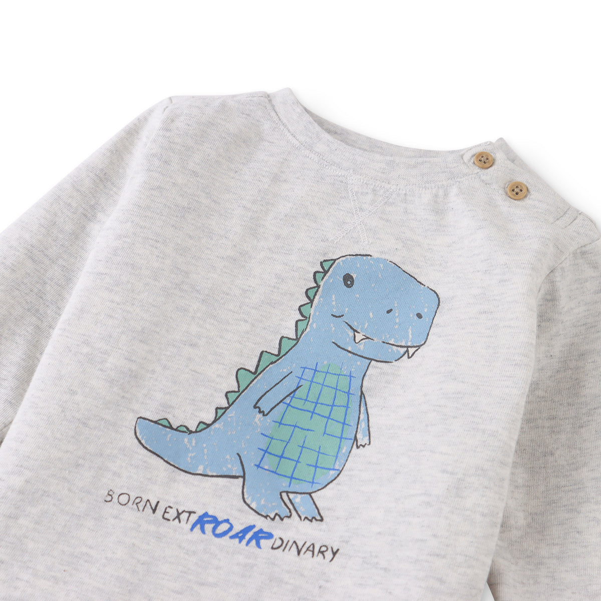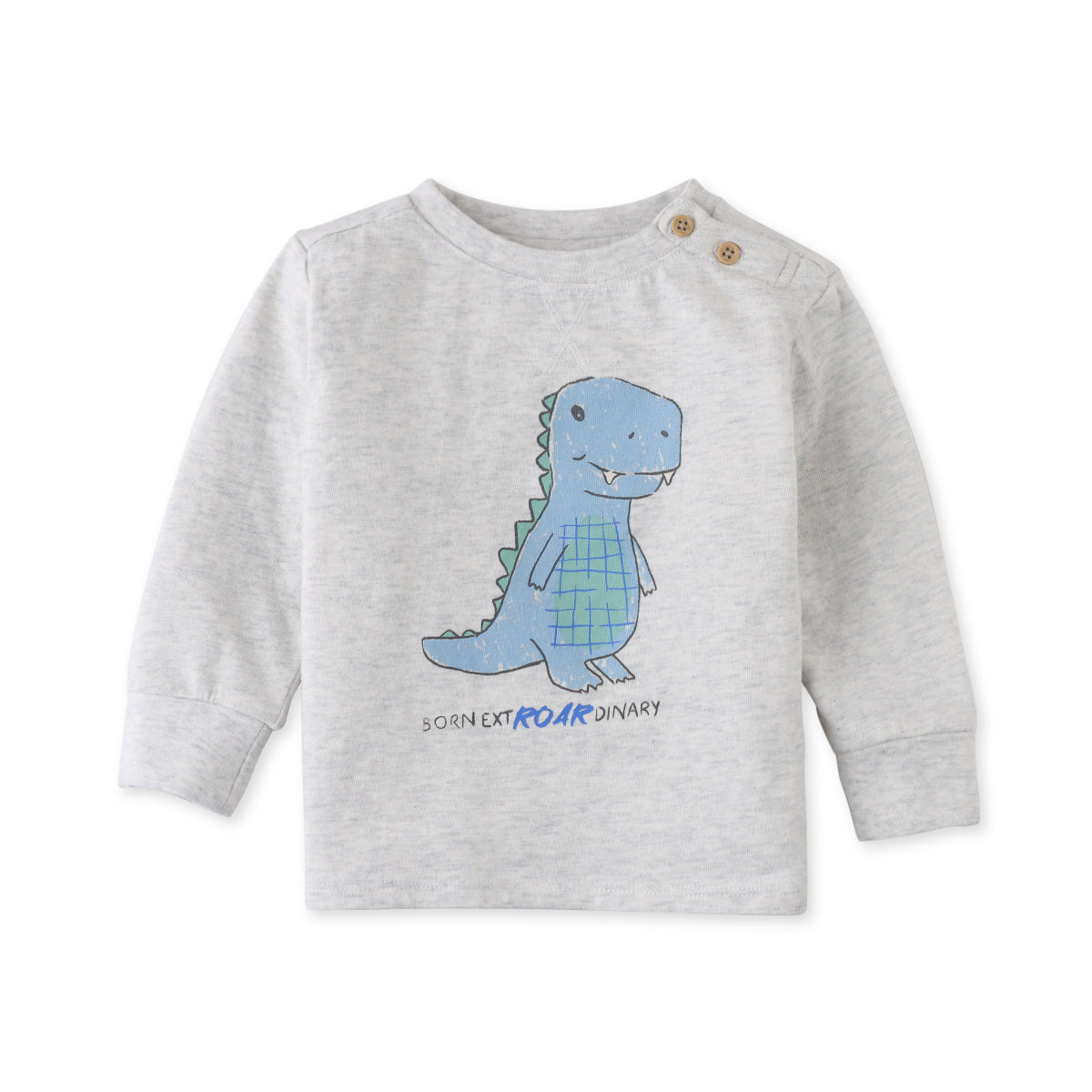 Make a roaring statement with our Baby Kael Long Sleeves T-Shirt in gray melange, featuring our Extraordinary Dino print.