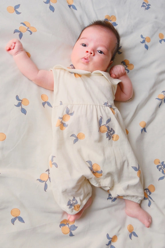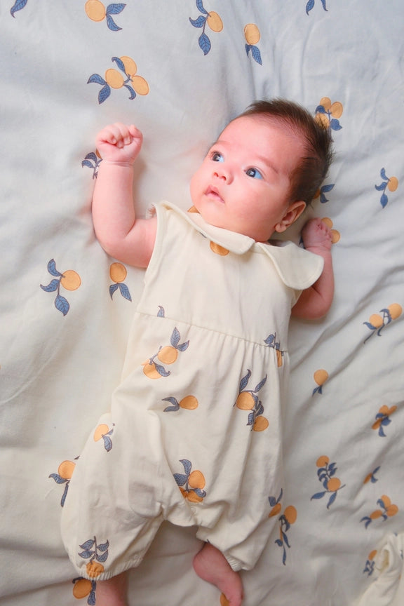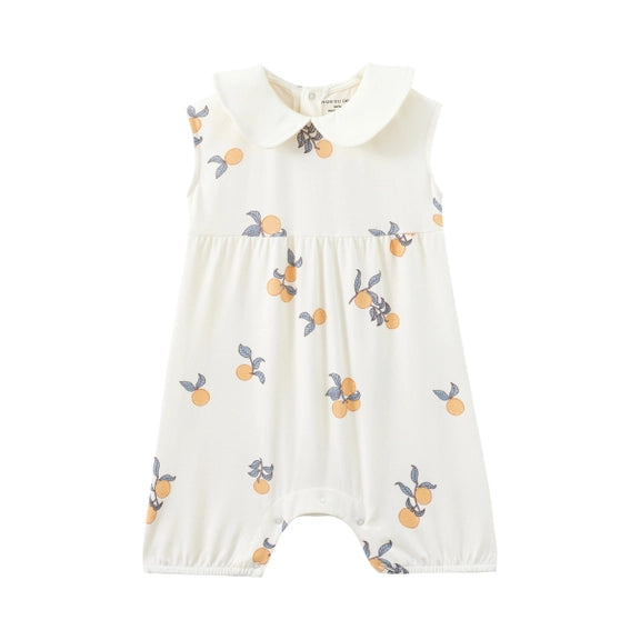 The baby romper is in the softest organic cotton fabric, with a much more relaxed lightweight fitting. It is the essential one-piece for babies in the summer time. Snap buttons along the bottom for easy diaper changing.