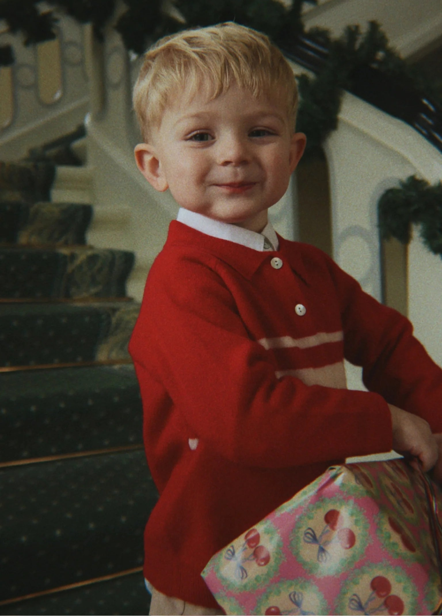 Soft and warm wool sweater in a classic polo design. Features rib cuffs, a regular collar, and front button placket.