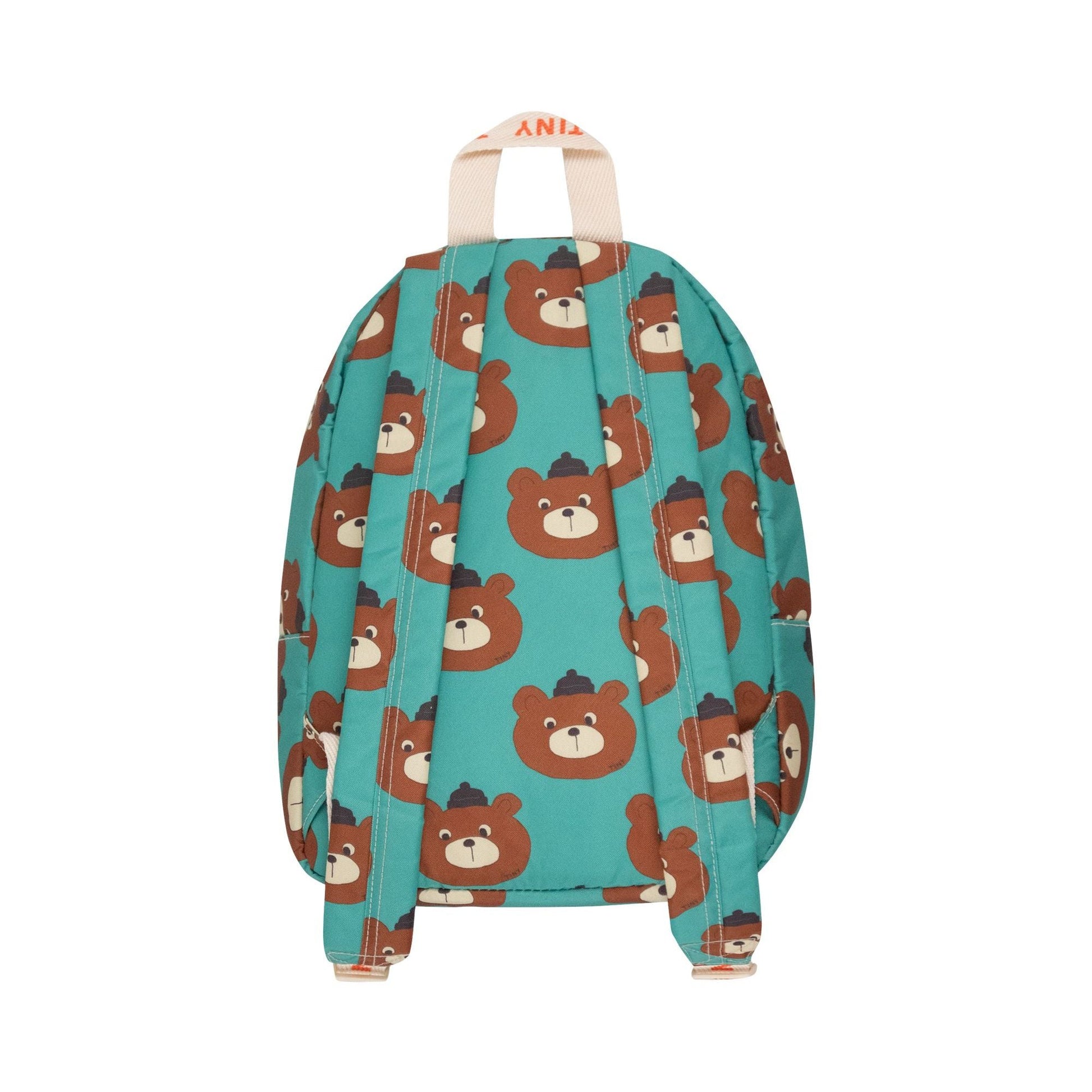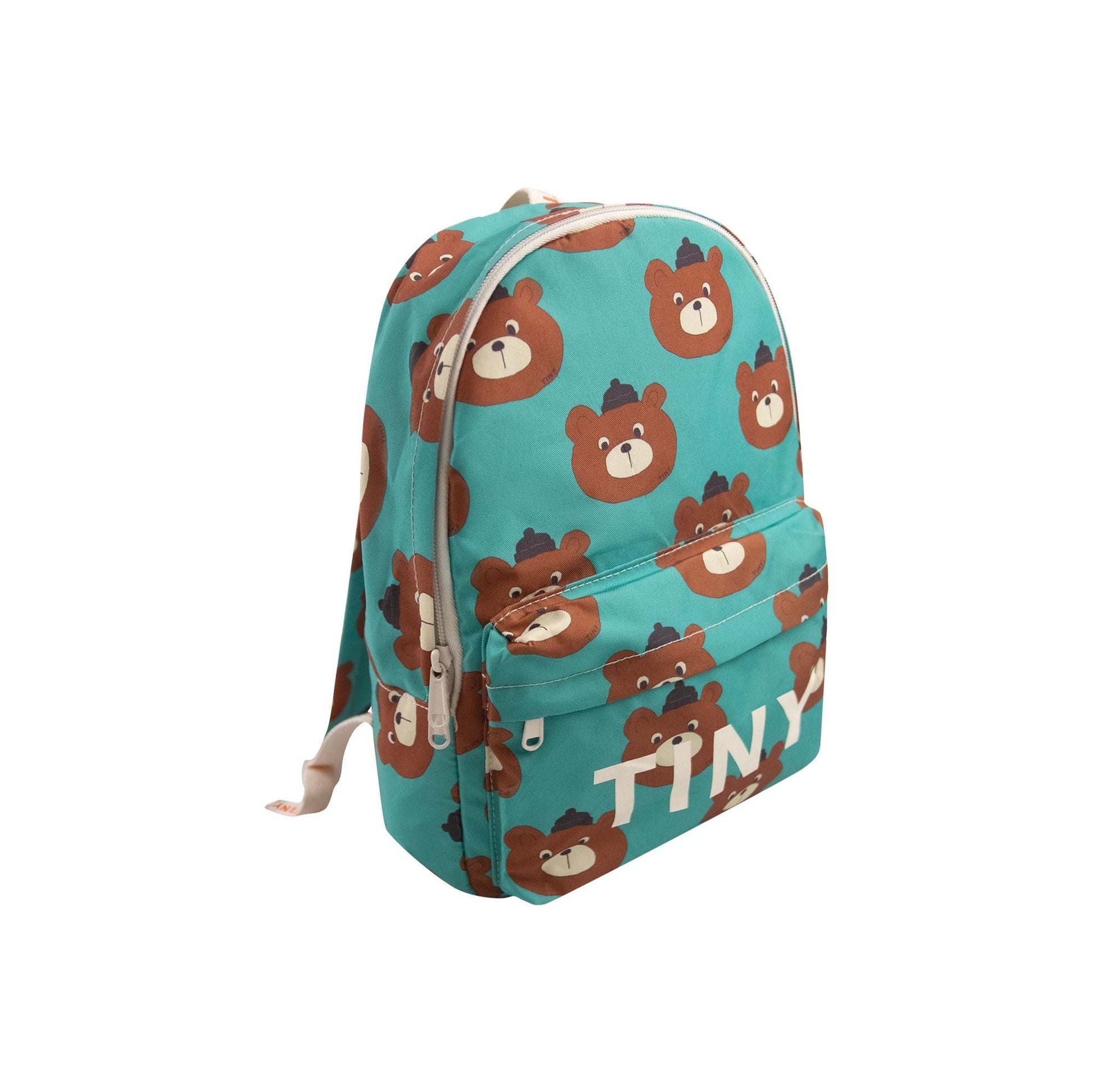 This bear print backpack in emerald features a top handle as well as adjustable straps for comfort and fit. The main compartment is the perfect size for school and the zipped front pocket offers additional storage space for small items.