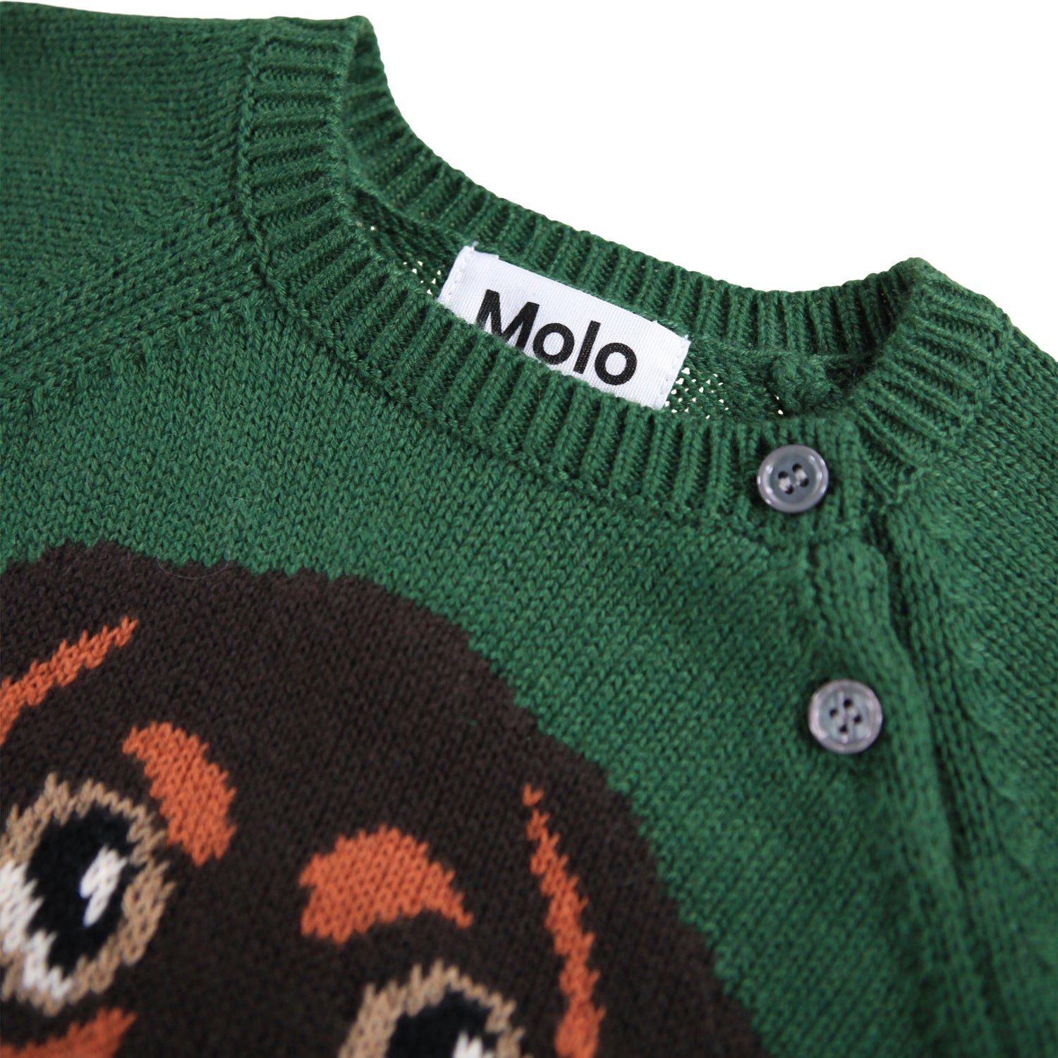 Discover the charming Molo Dachs Puppy Bless Jumper, perfect for keeping your little ones warm and cozy. Crafted from soft, knitted fabric, this delightful jumper features a playful puppy design that captures the imagination.