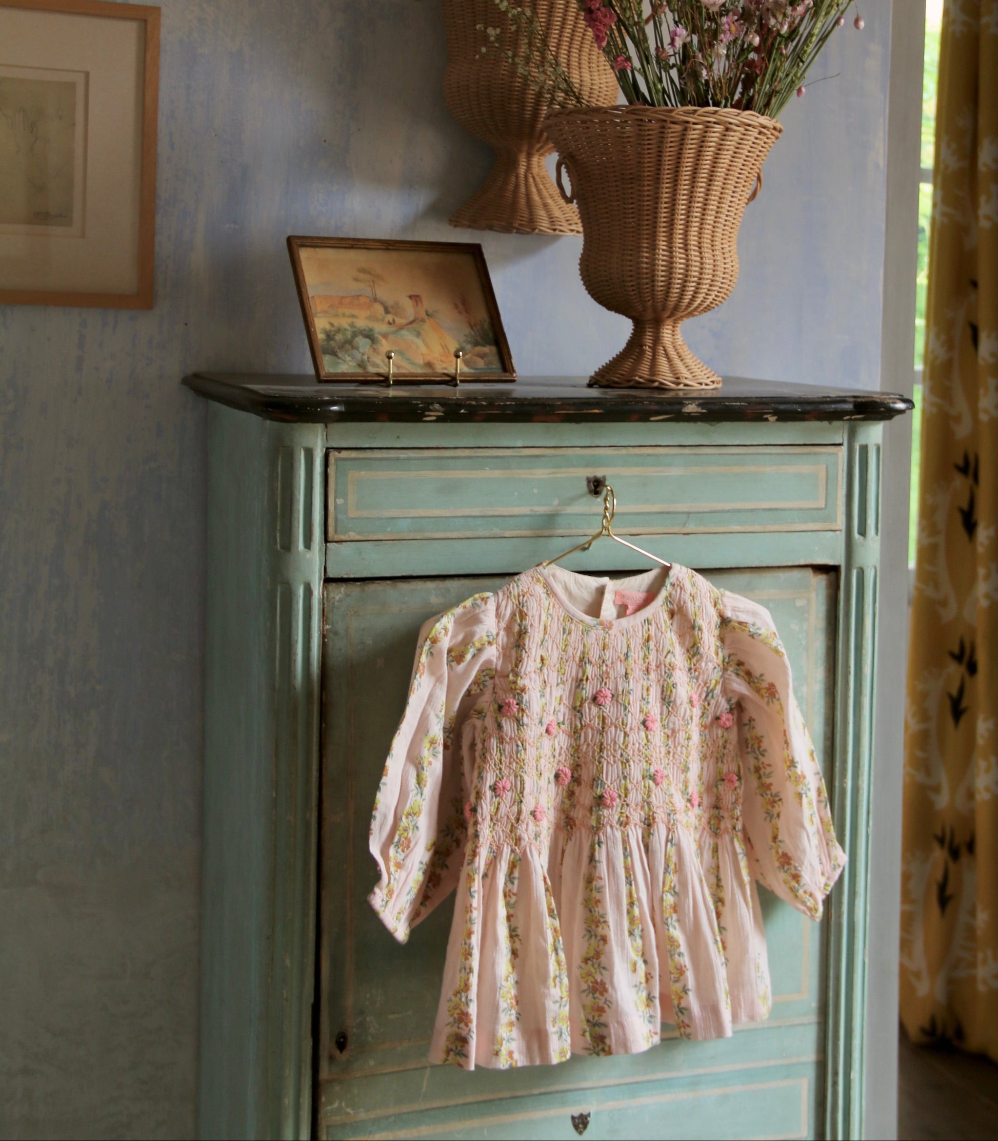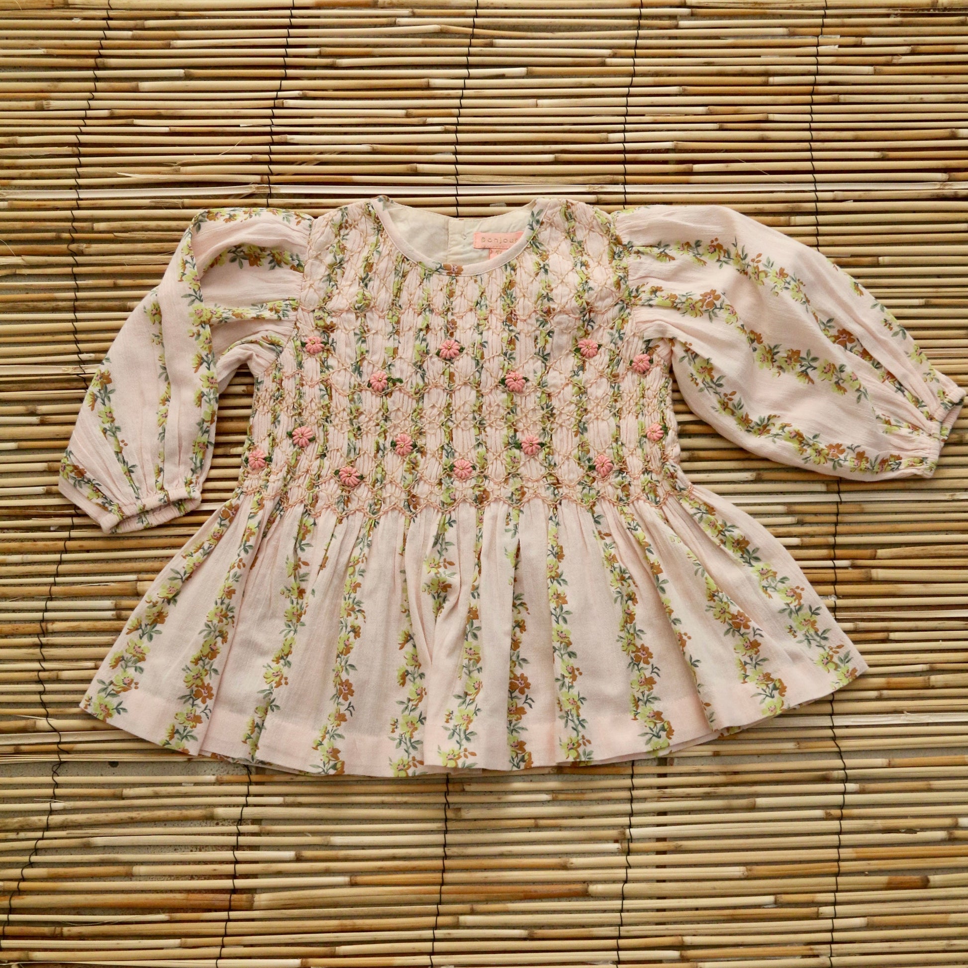 Bonjour SS25 Drop 2 : Blouse Smocks Long Sleeves, Farandole Flowers Print Crepe