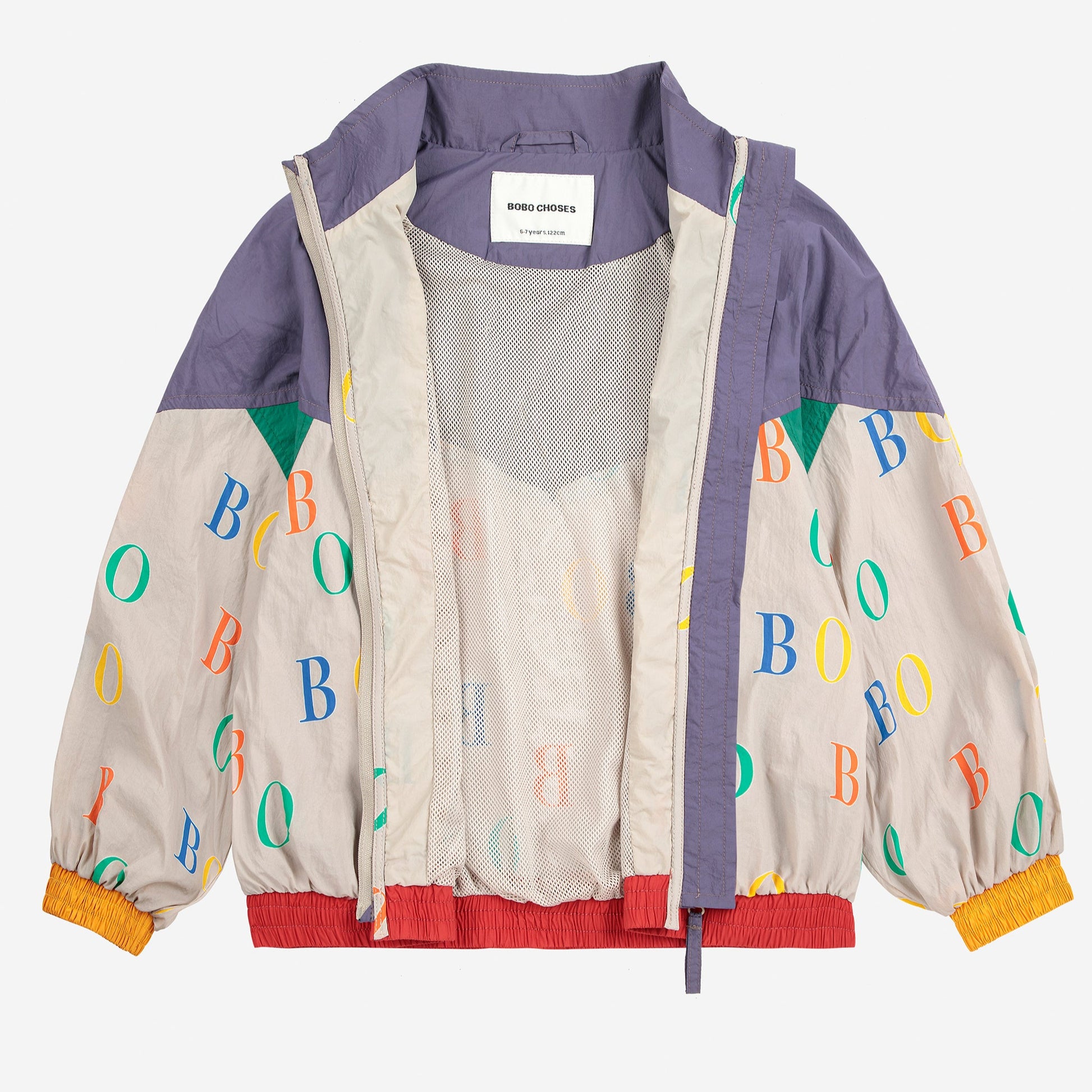 Multicolor jacket. Designed with long sleeves, zipped, elasticated bottom, elasticated cuffs, loose fit, mesh lining, high neck, seam pocket and lightweight fabric. Made in China.