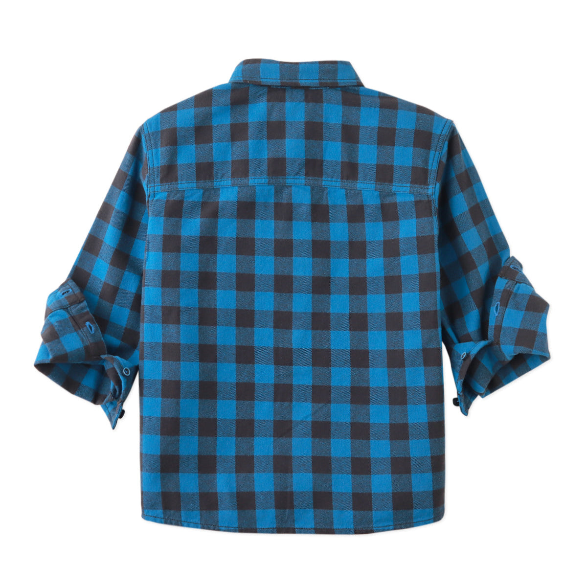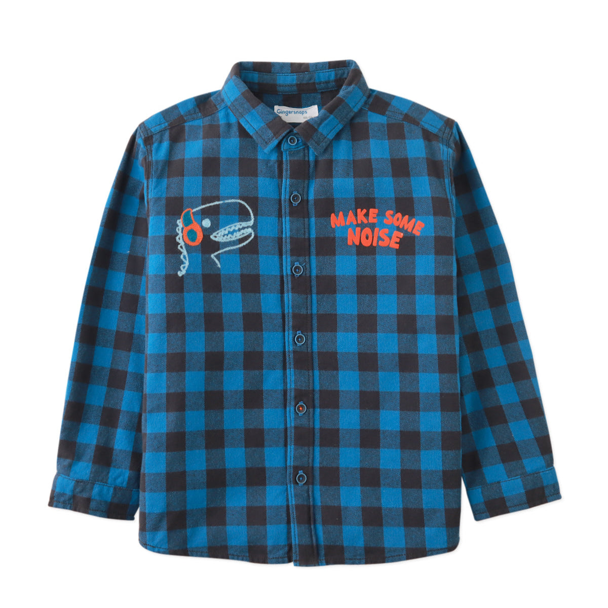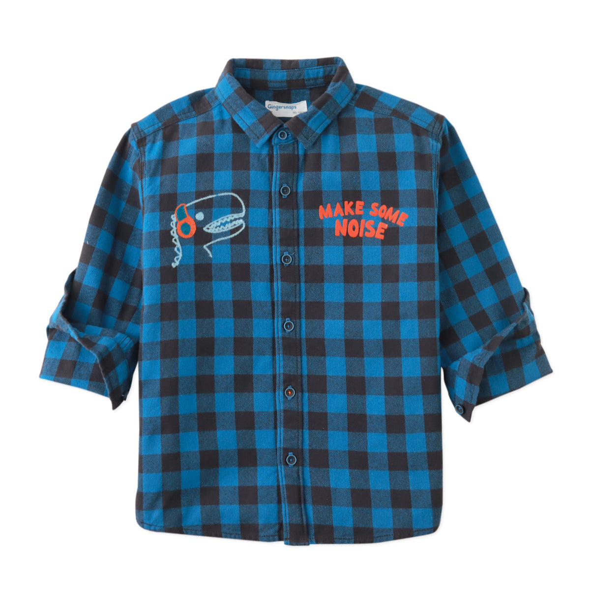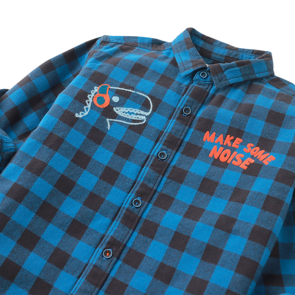 Featuring a super cool embroidered Dino DJ, our Roman Long Sleeves Shirt in Nocturno plaid lets your little rockstar stand out in every playdate and parties.
