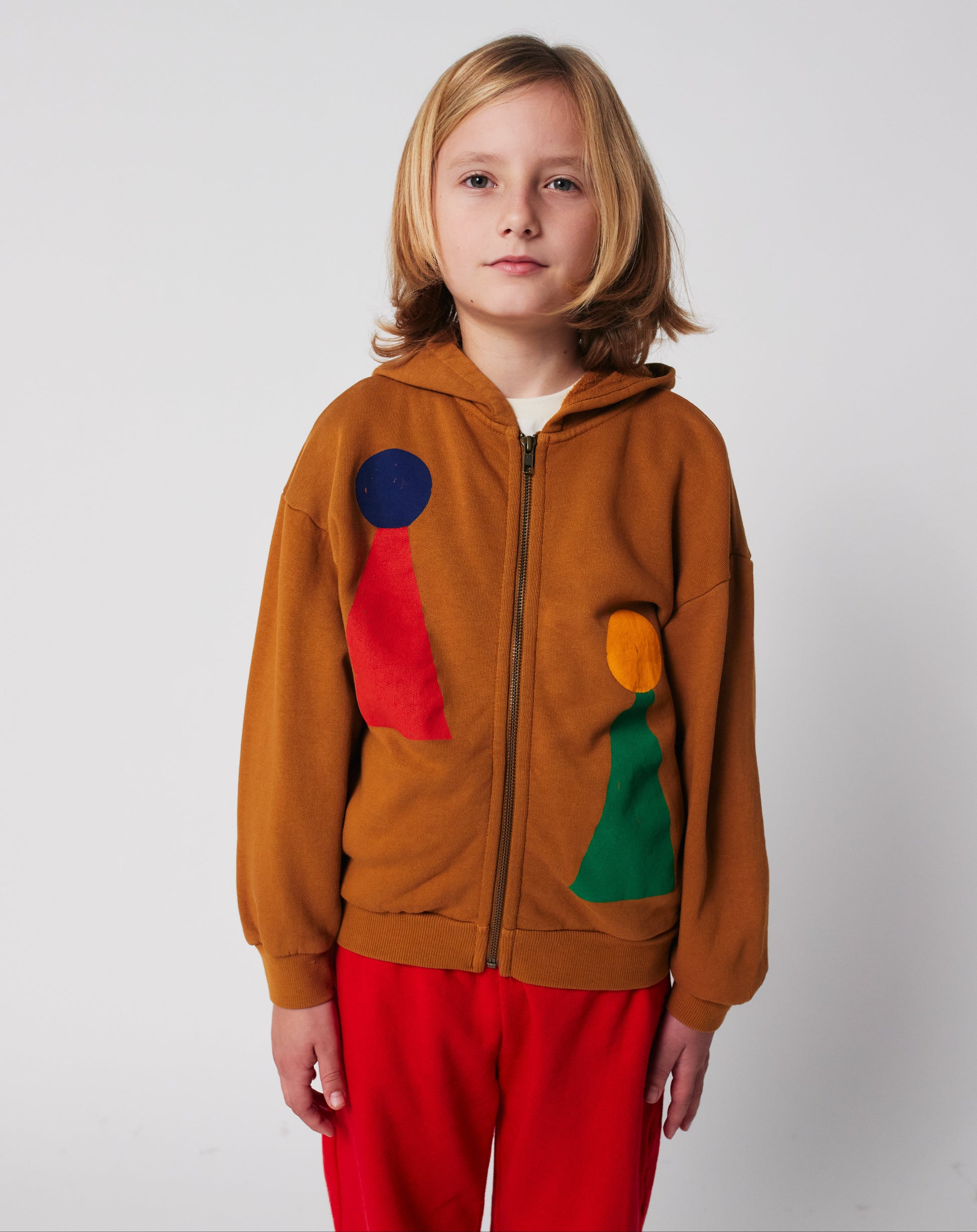 Brown sweatshirt. Designed with hooded, long sleeves, ribbed cuffs, loose fit, ribbed bottom, seam pocket and inner brush fleece. Made in Spain.