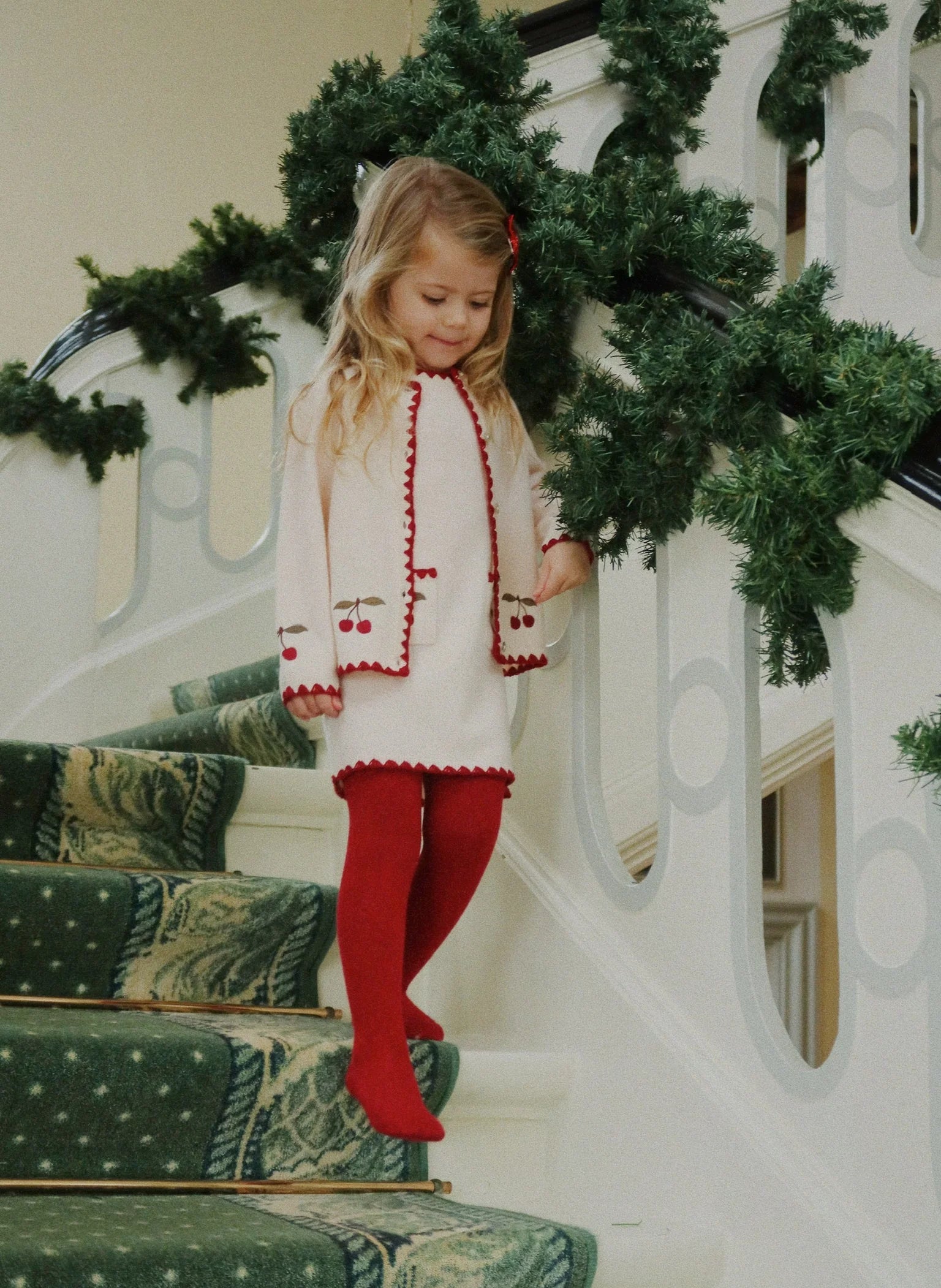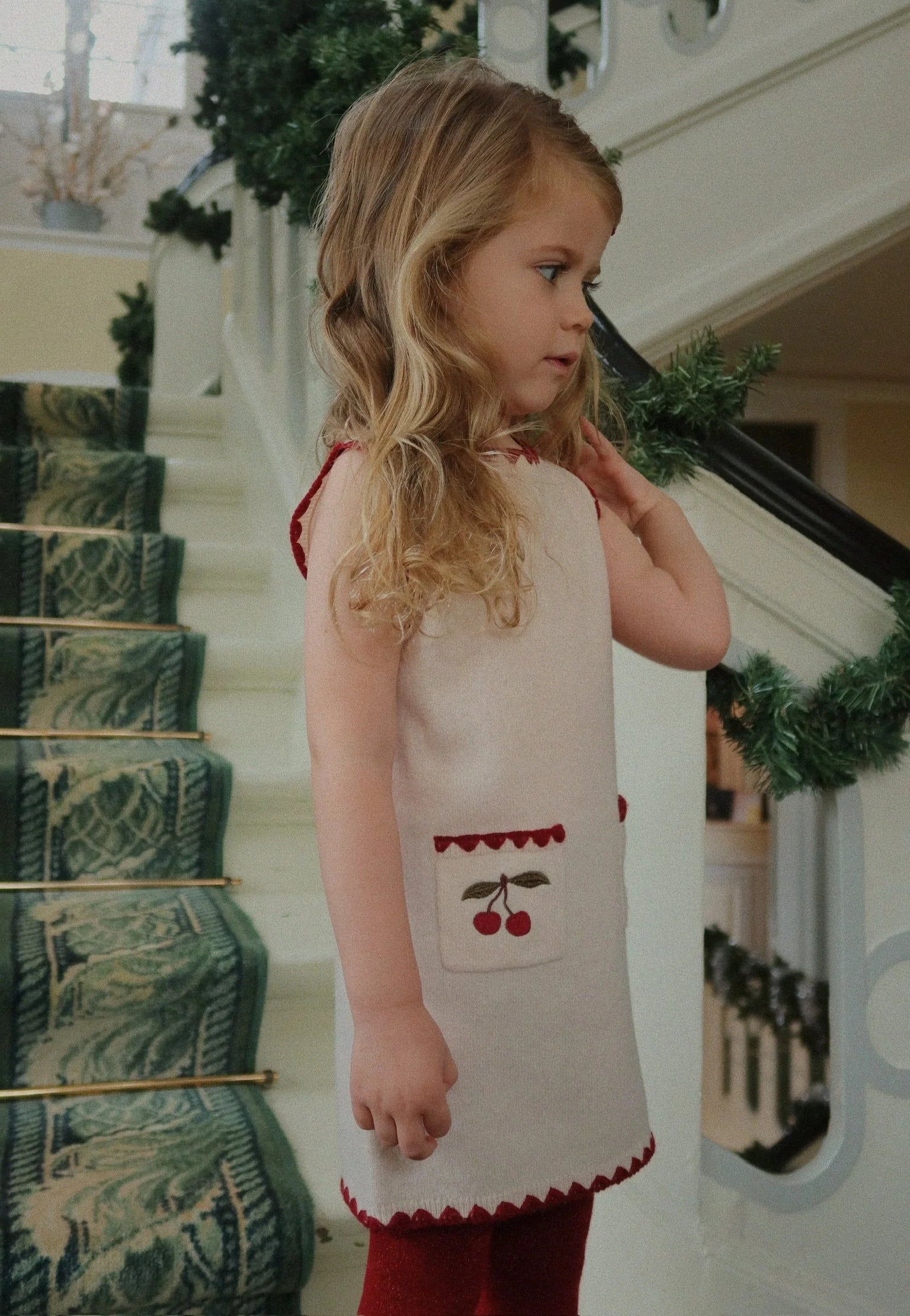 Knitted wool dress in an exceptionally soft and comfy quality with delicate cherry embroidery. Designed with front pockets and a straight, fitted silhouette.