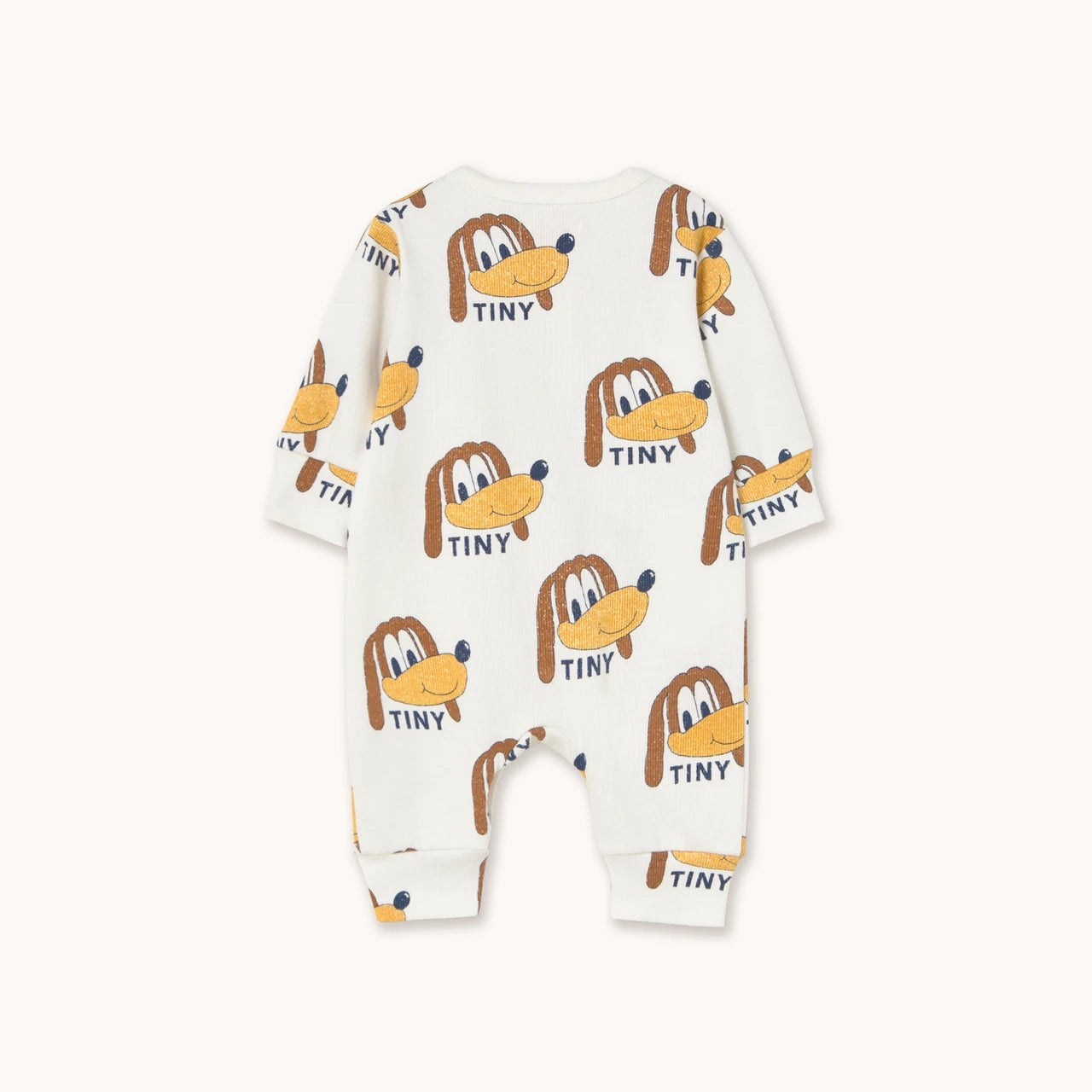 This Dogs allover print rib one-piece is crafted from a soft organic cotton blend, offering a breathable feel. It features a comfortable fit, long sleeves, and snap buttons for easy dressing.