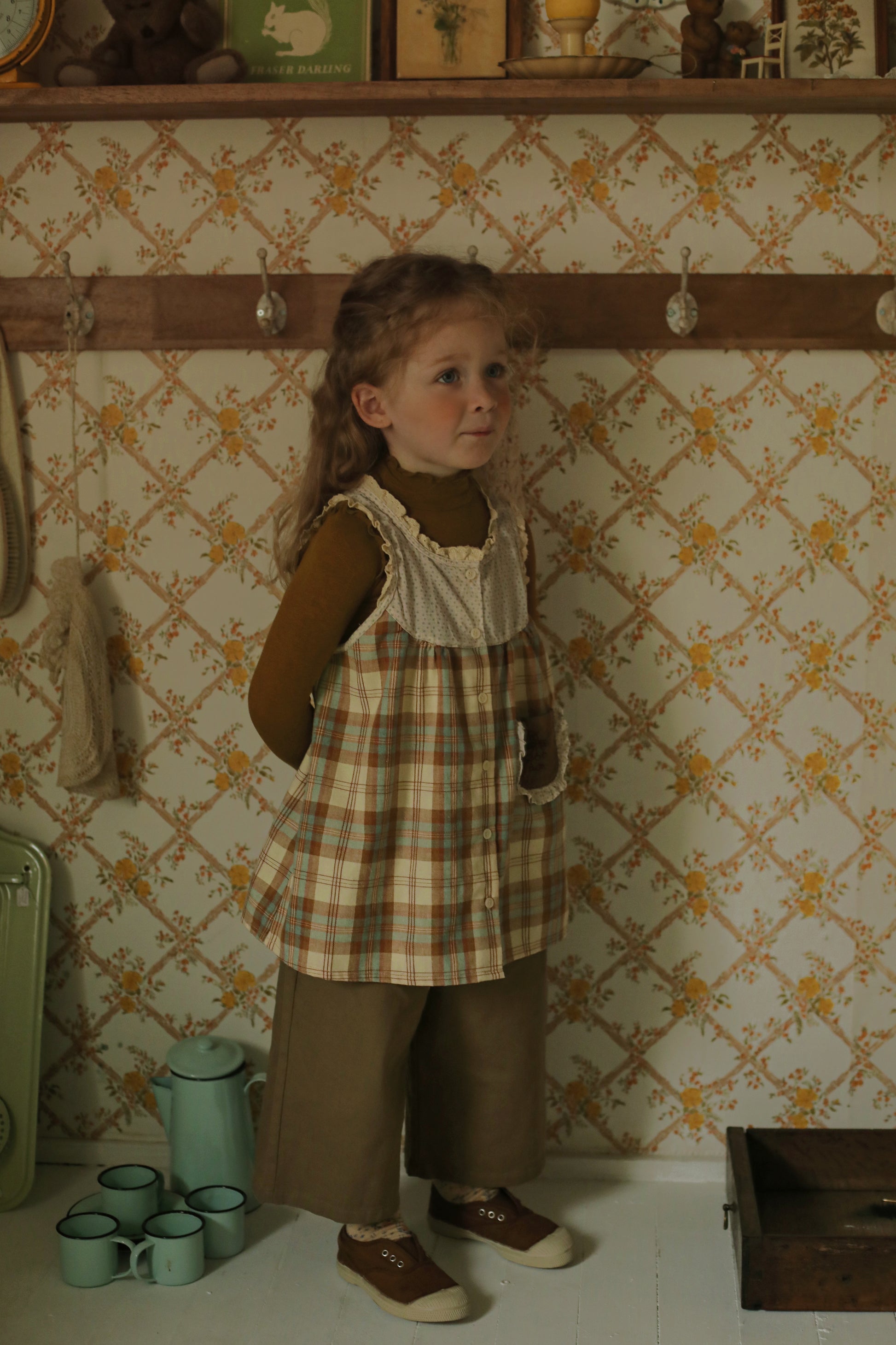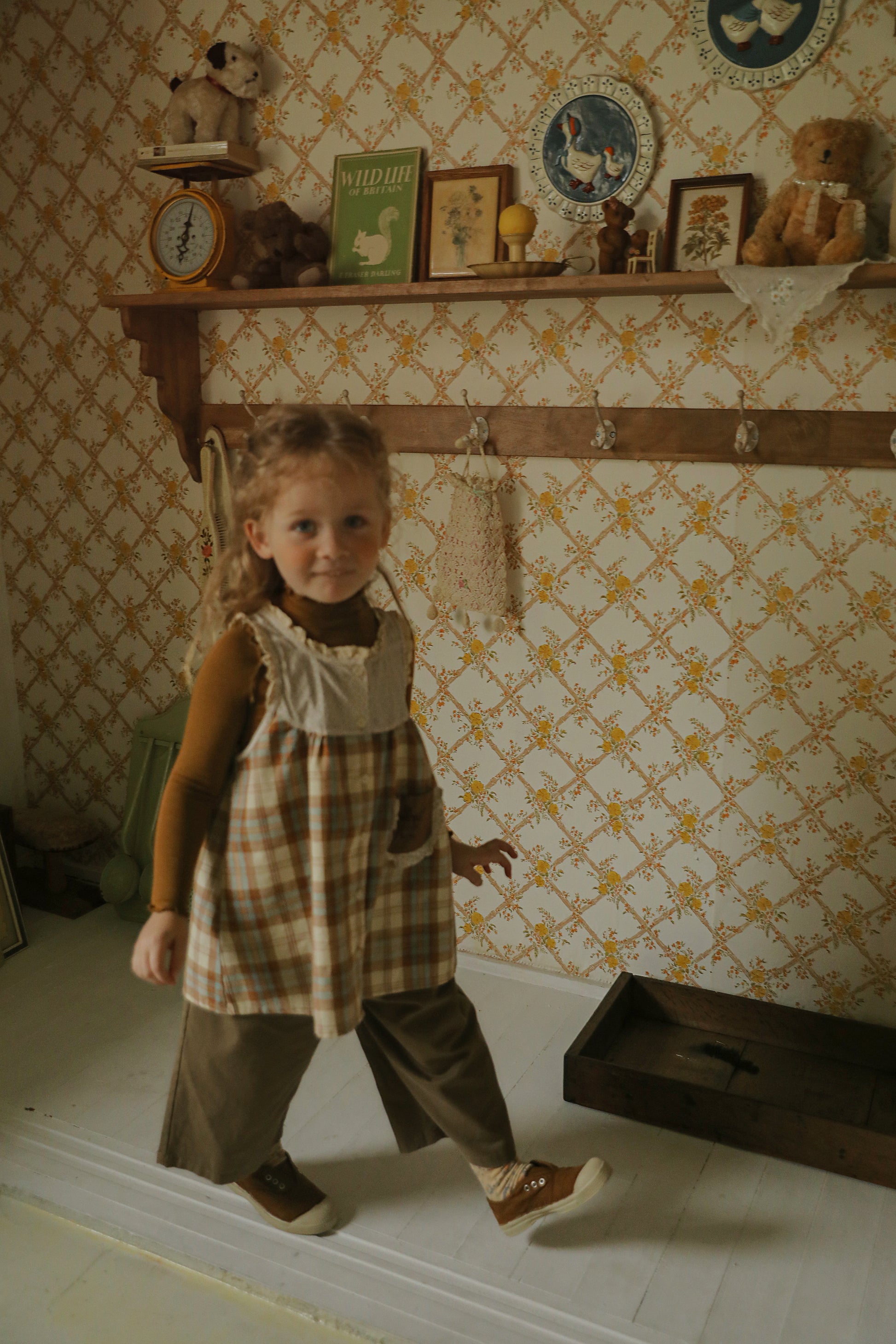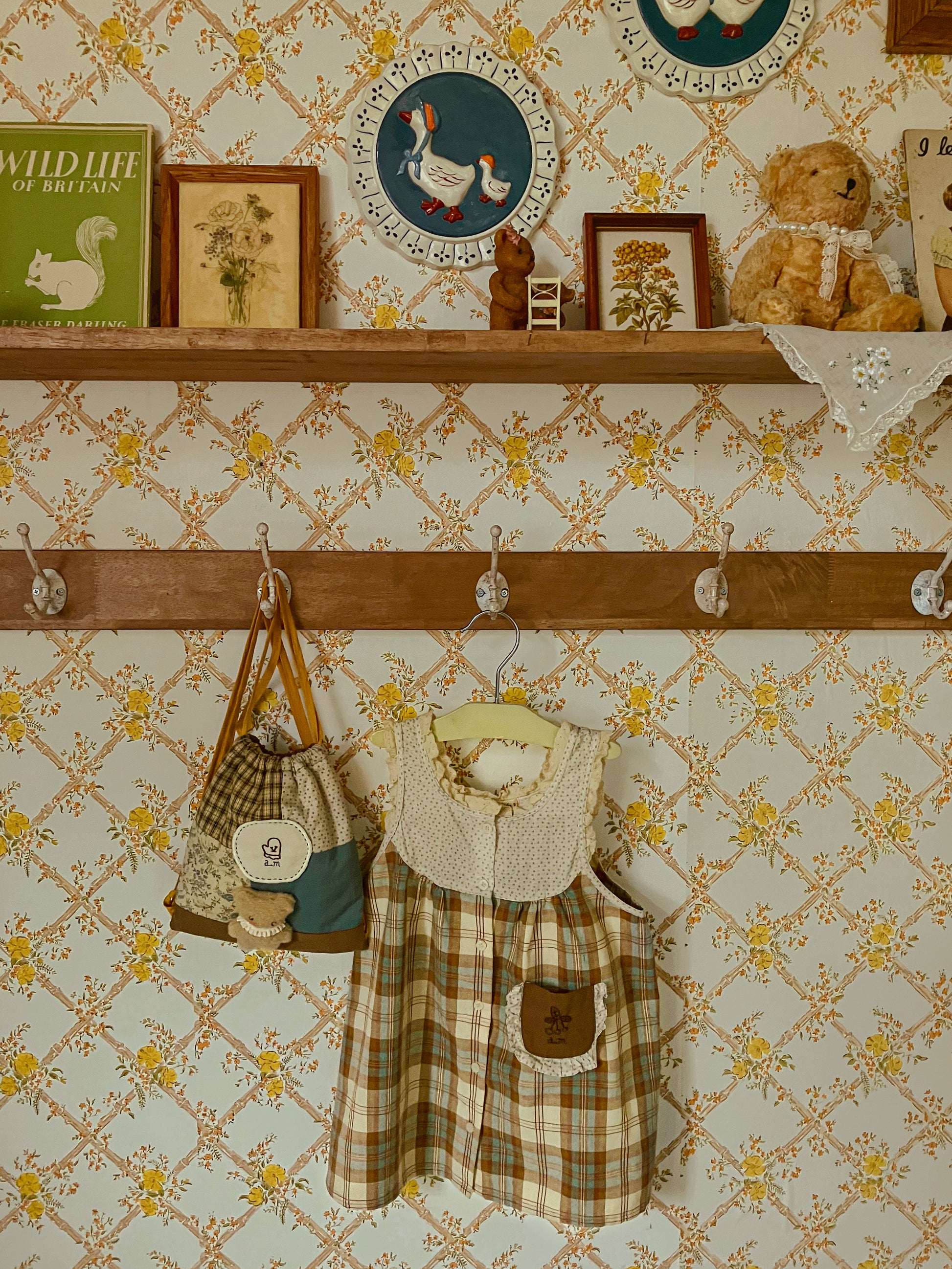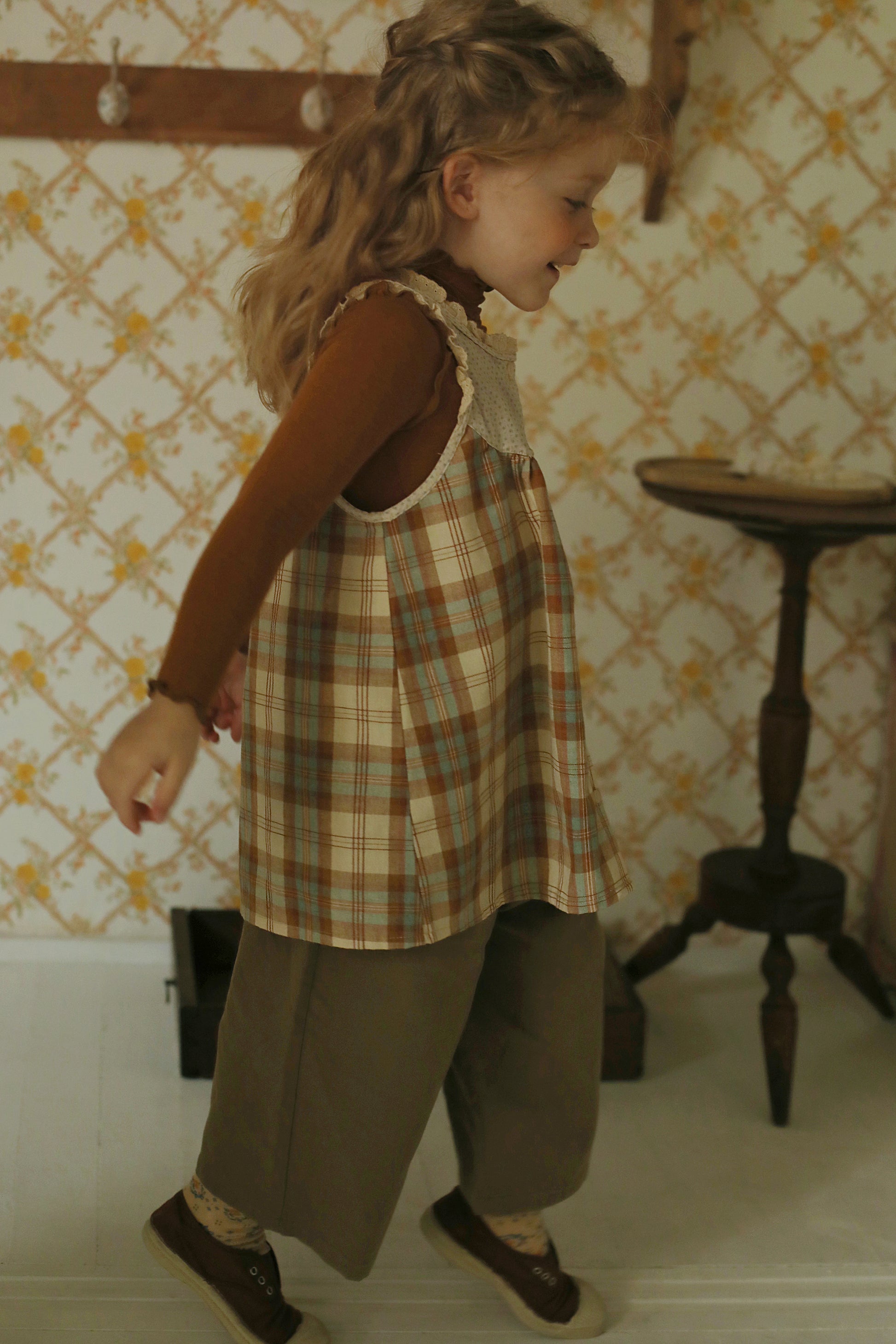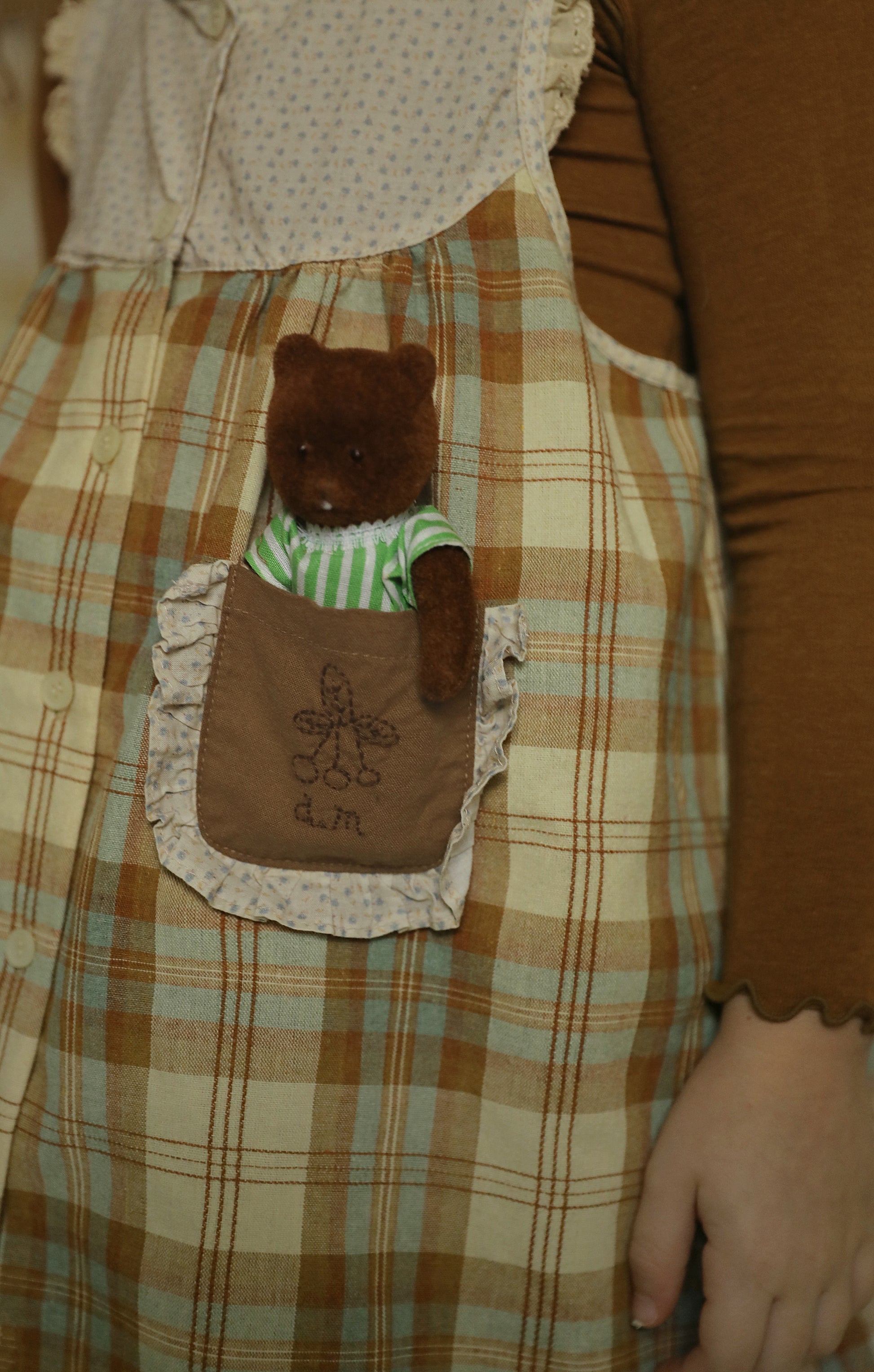 Sleeveless dress full of romantic details, perfect for layering all season or wearing alone in the summer. Features cotton lace on the hem, a mini pocket with cherry embroidery and a mix of two unique patterns.