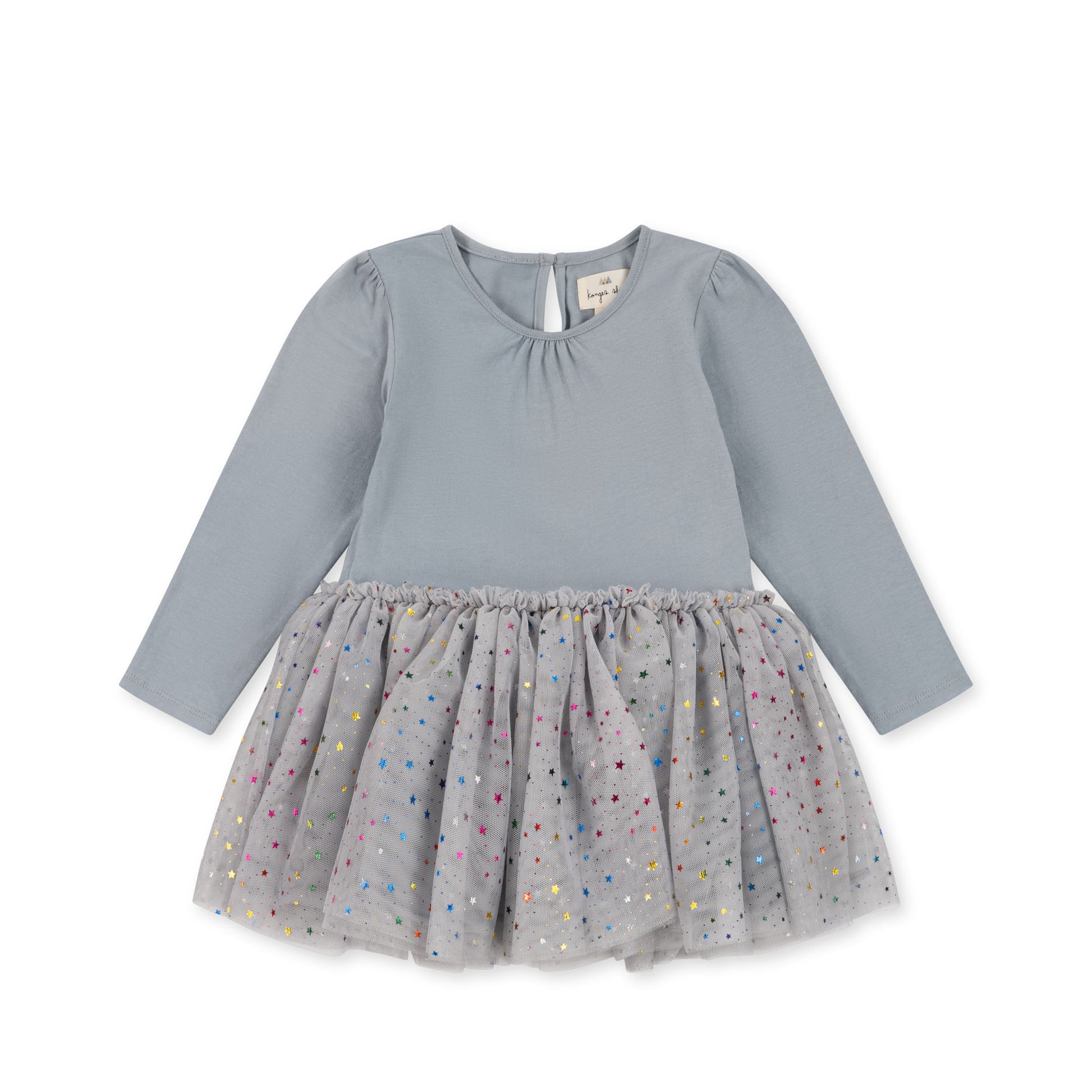 Soft long-sleeved ballerina dress with puff sleeves and a three-layered tulle skirt.