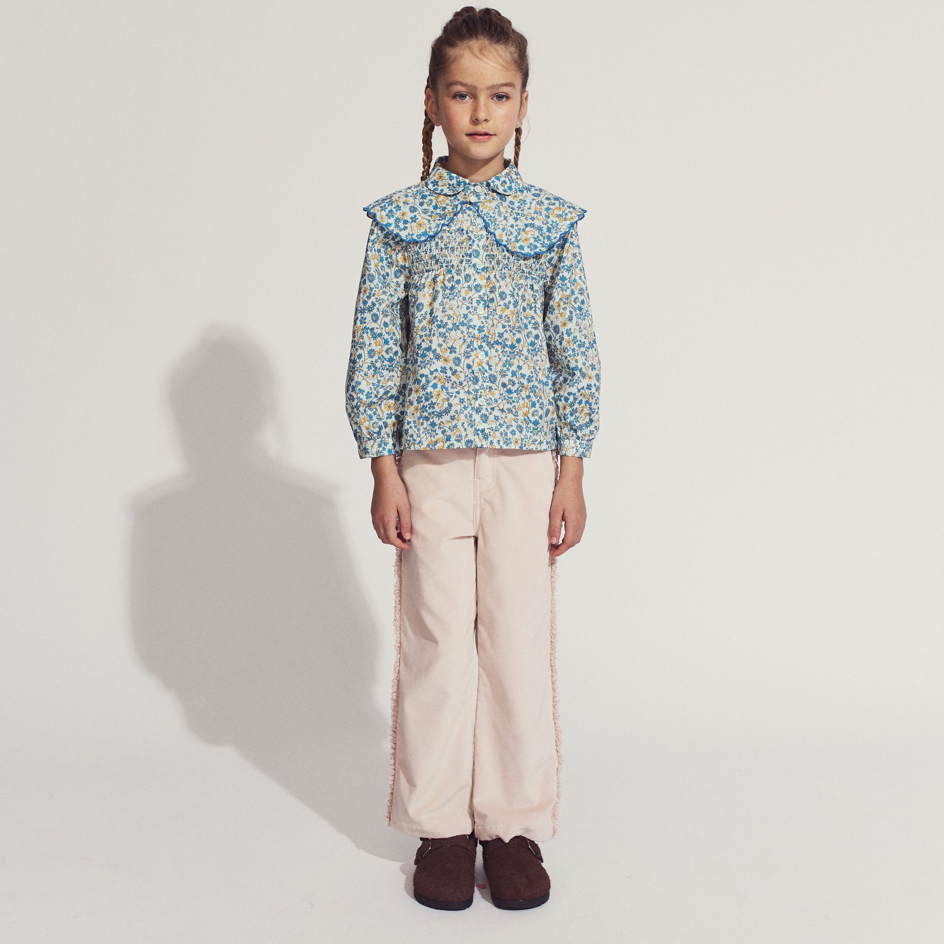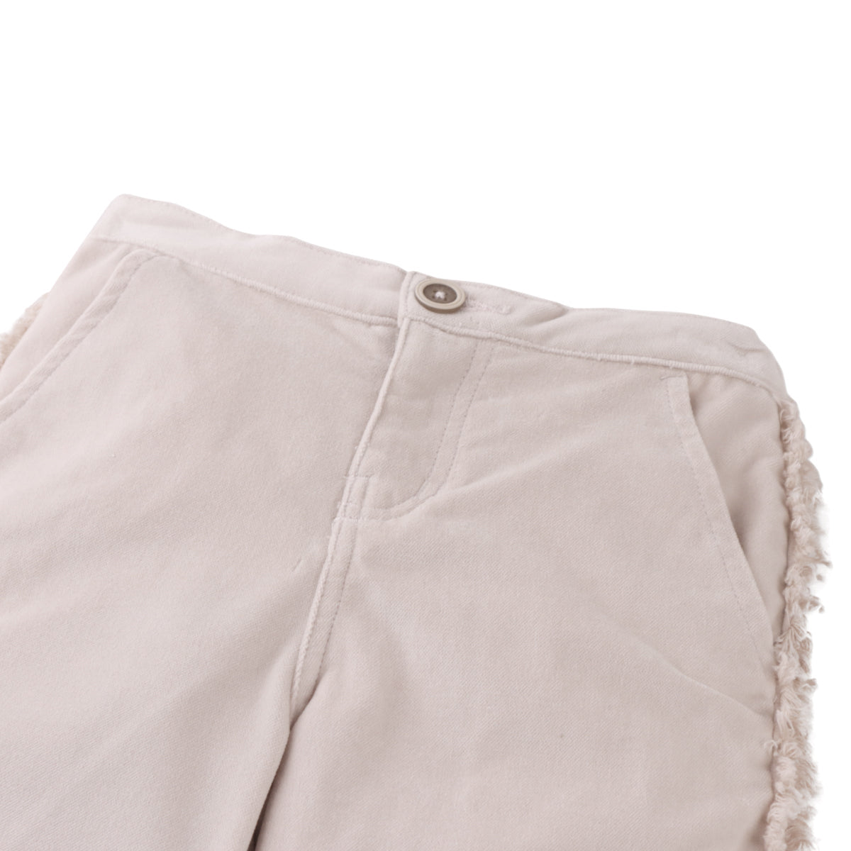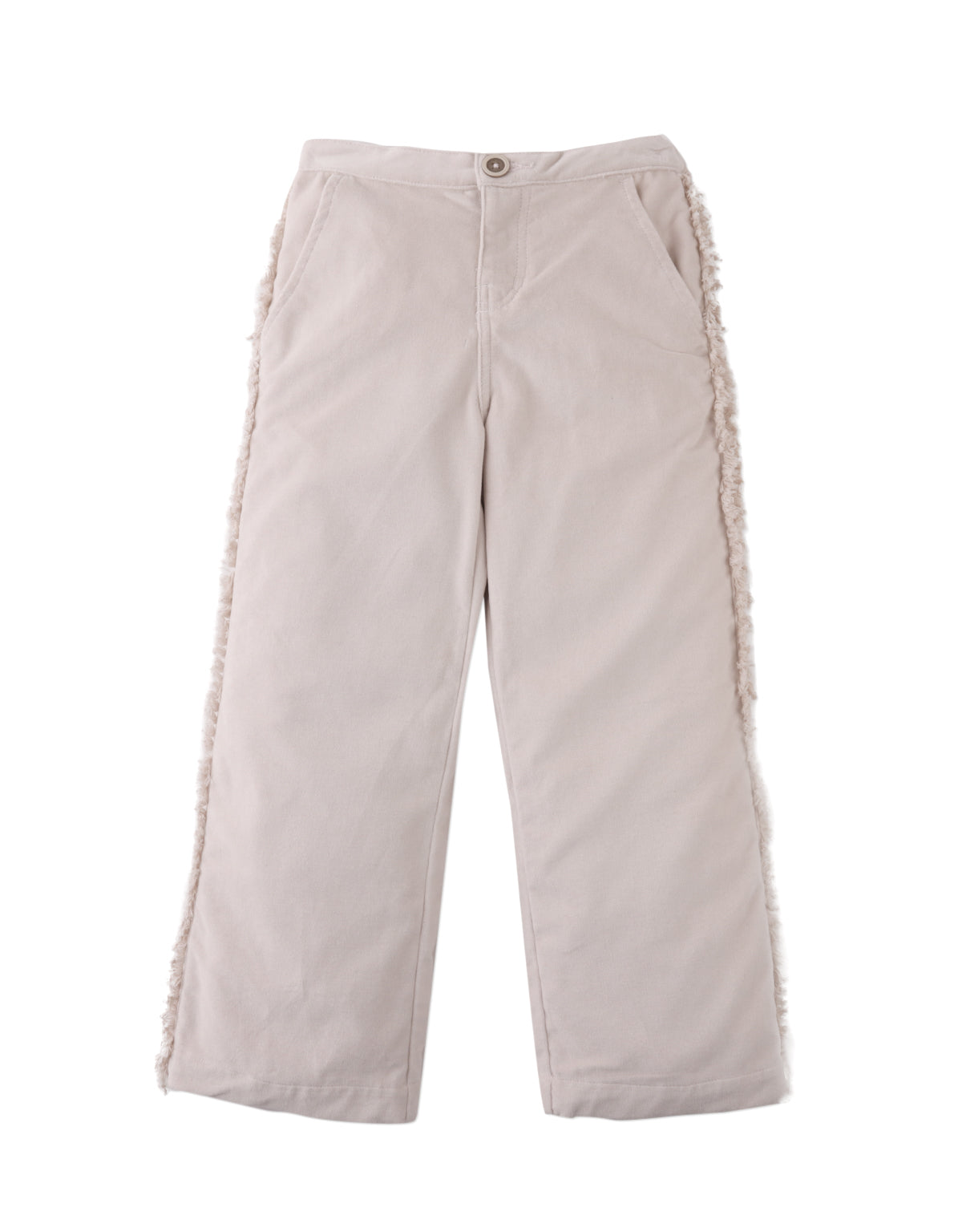 The Rhea Wide Leg Pants in light mauve, with tonal tassel accents on the sides, bring a charming, rustic touch to your child's wardrobe, perfect for cozy, countryside-inspired days.