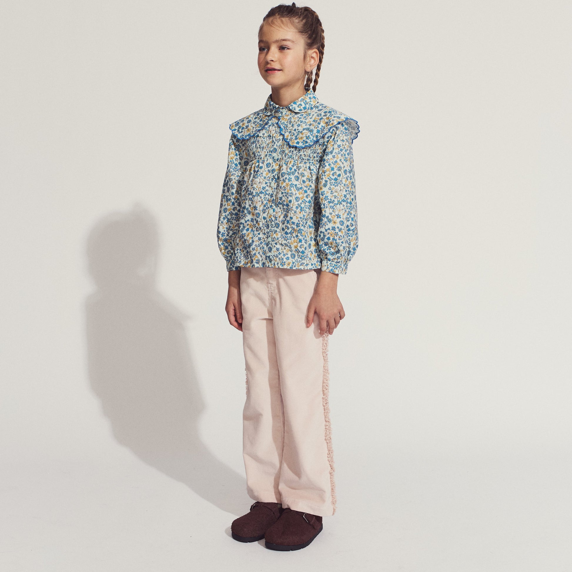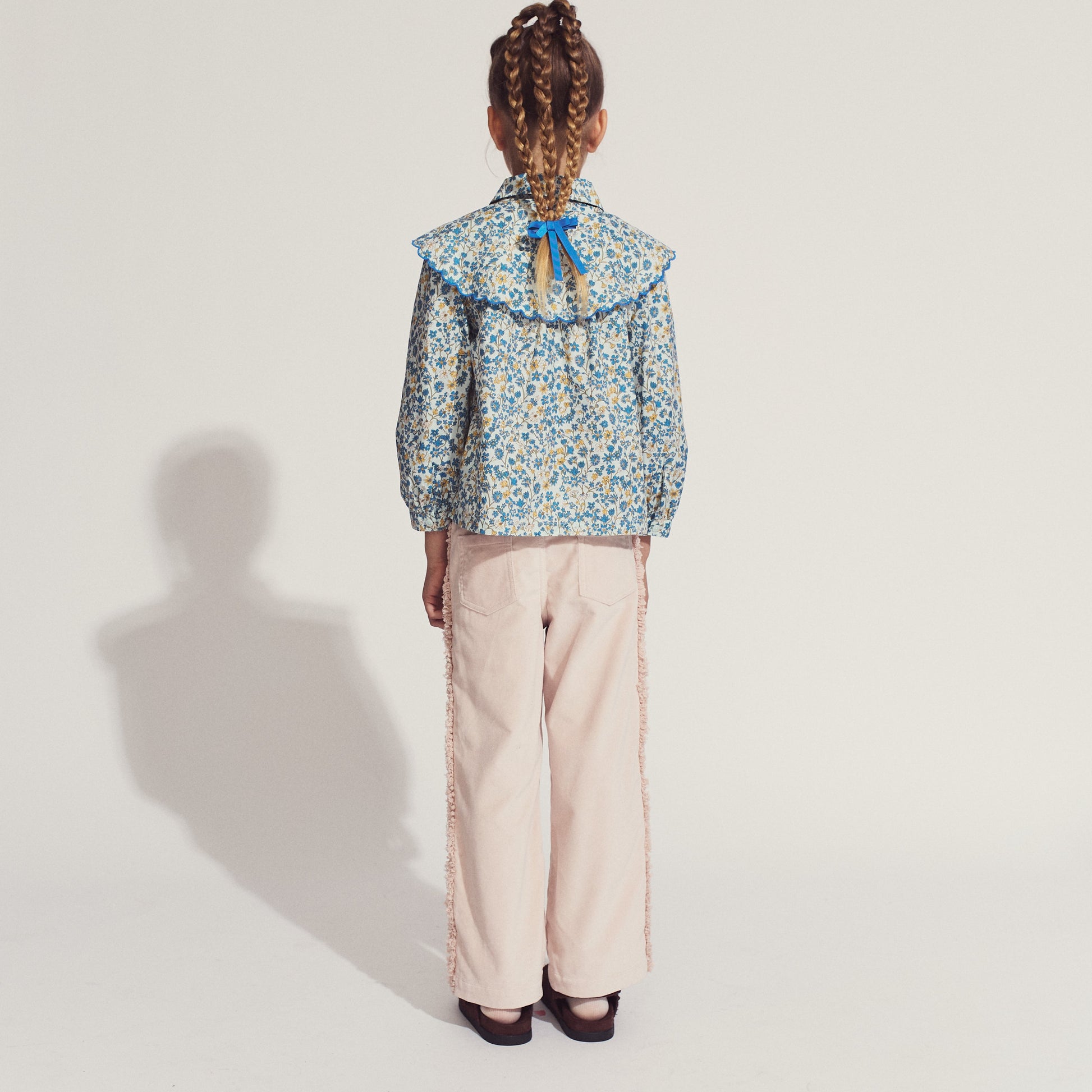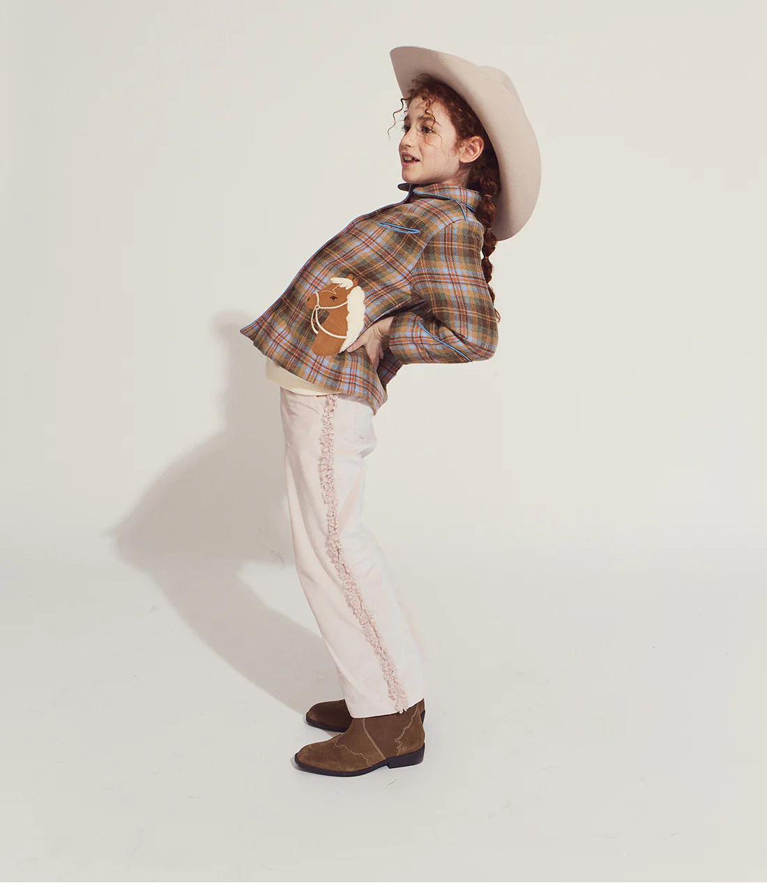 The Rhea Wide Leg Pants in light mauve, with tonal tassel accents on the sides, bring a charming, rustic touch to your child's wardrobe, perfect for cozy, countryside-inspired days.