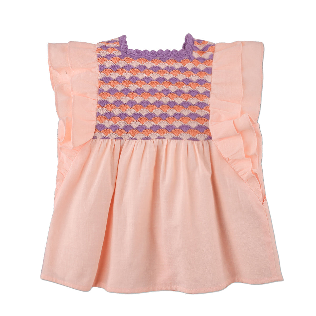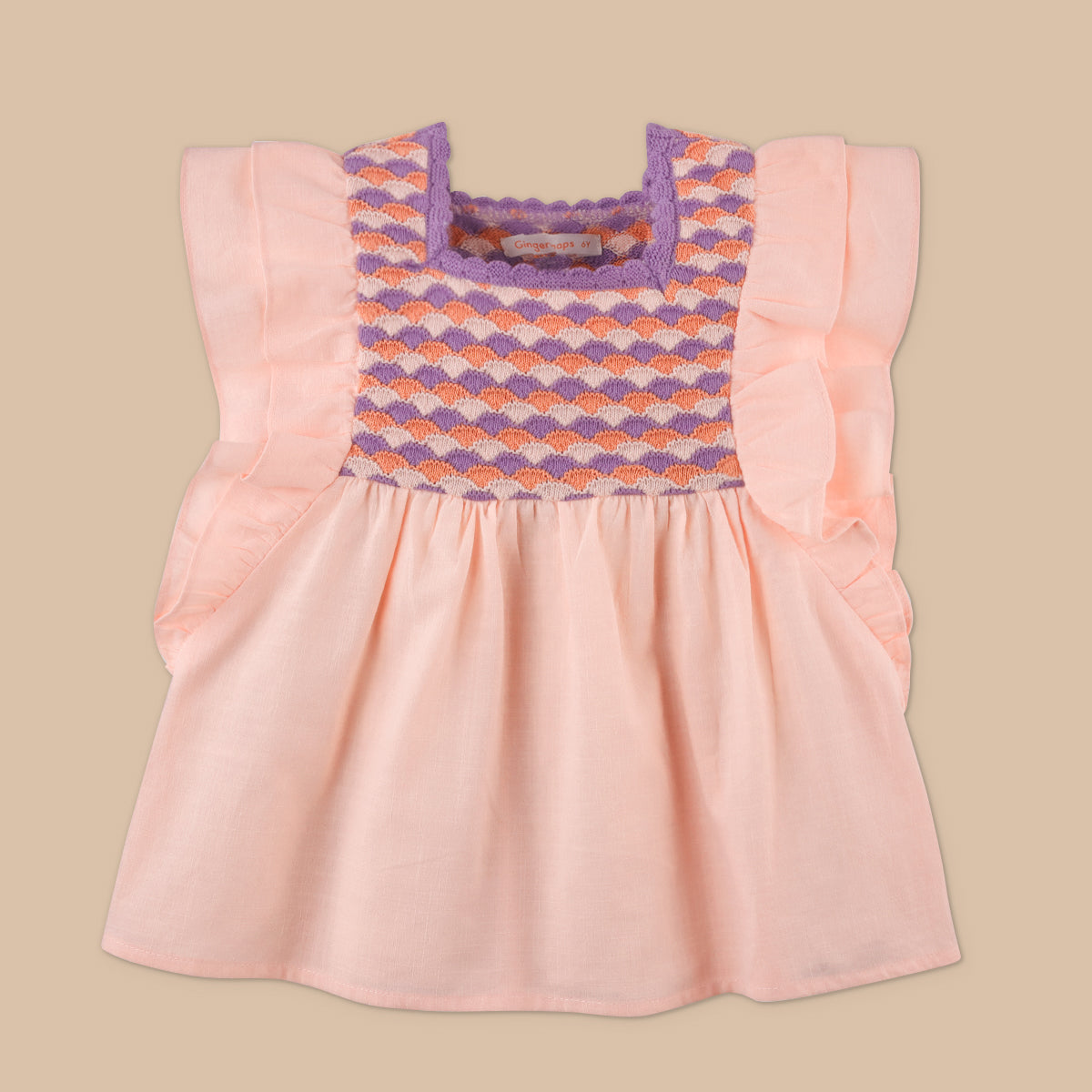 Gingersnaps SS25 GIRLS SYLVIA RUFFLED TOP W CROCHET-STYLE YOKE