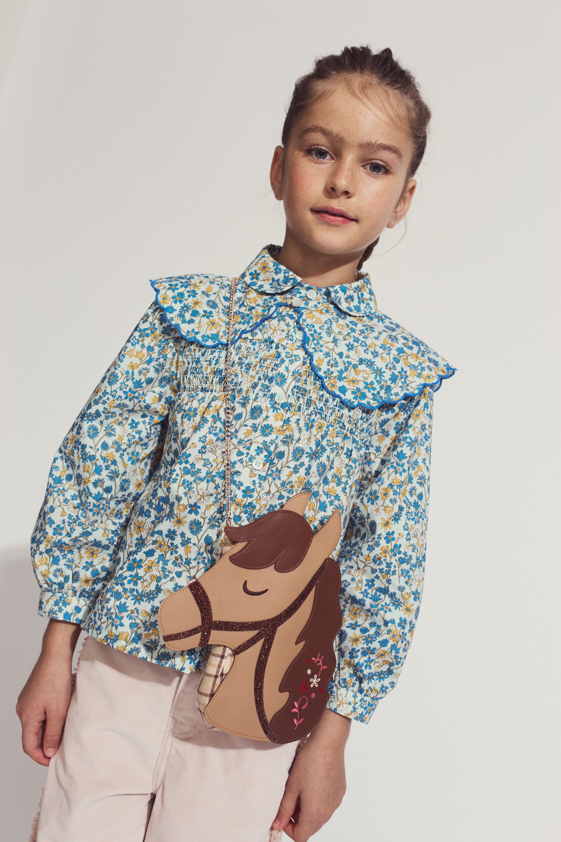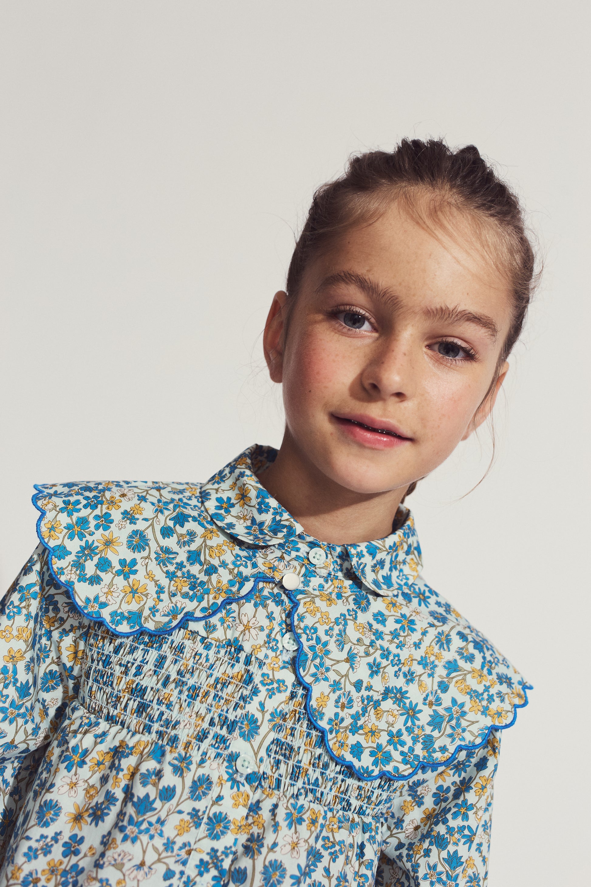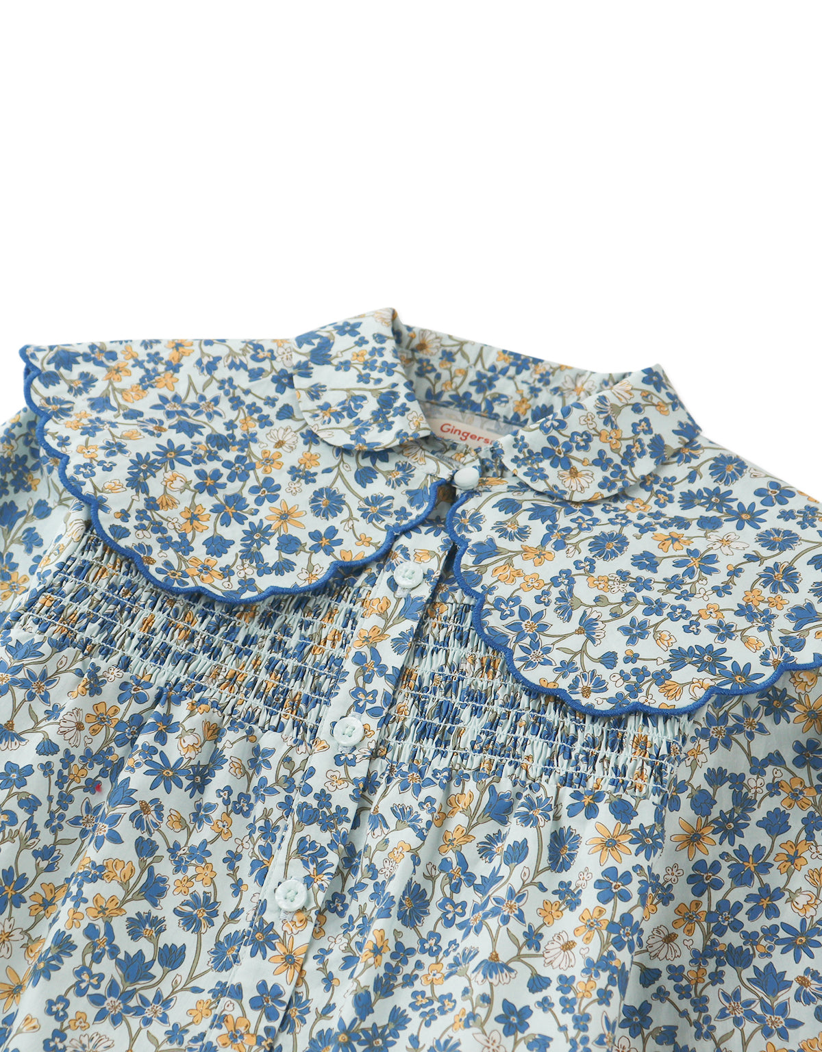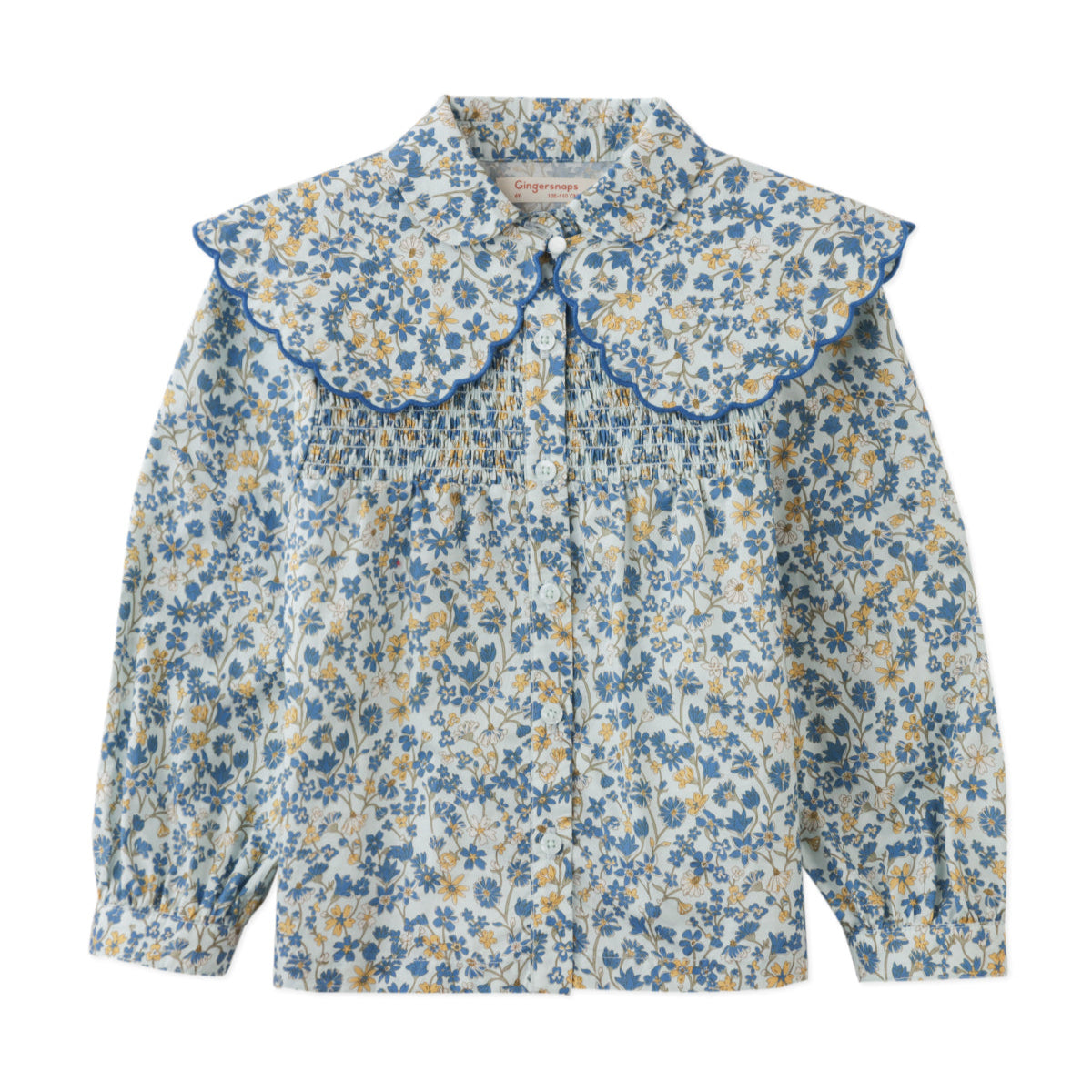 With the Vincenza Blouse in Monet, your little one will feel the charm of timeless elegance, thanks to its delicate smocking, sweet Peter Pan collar, and playful detachable mini cape