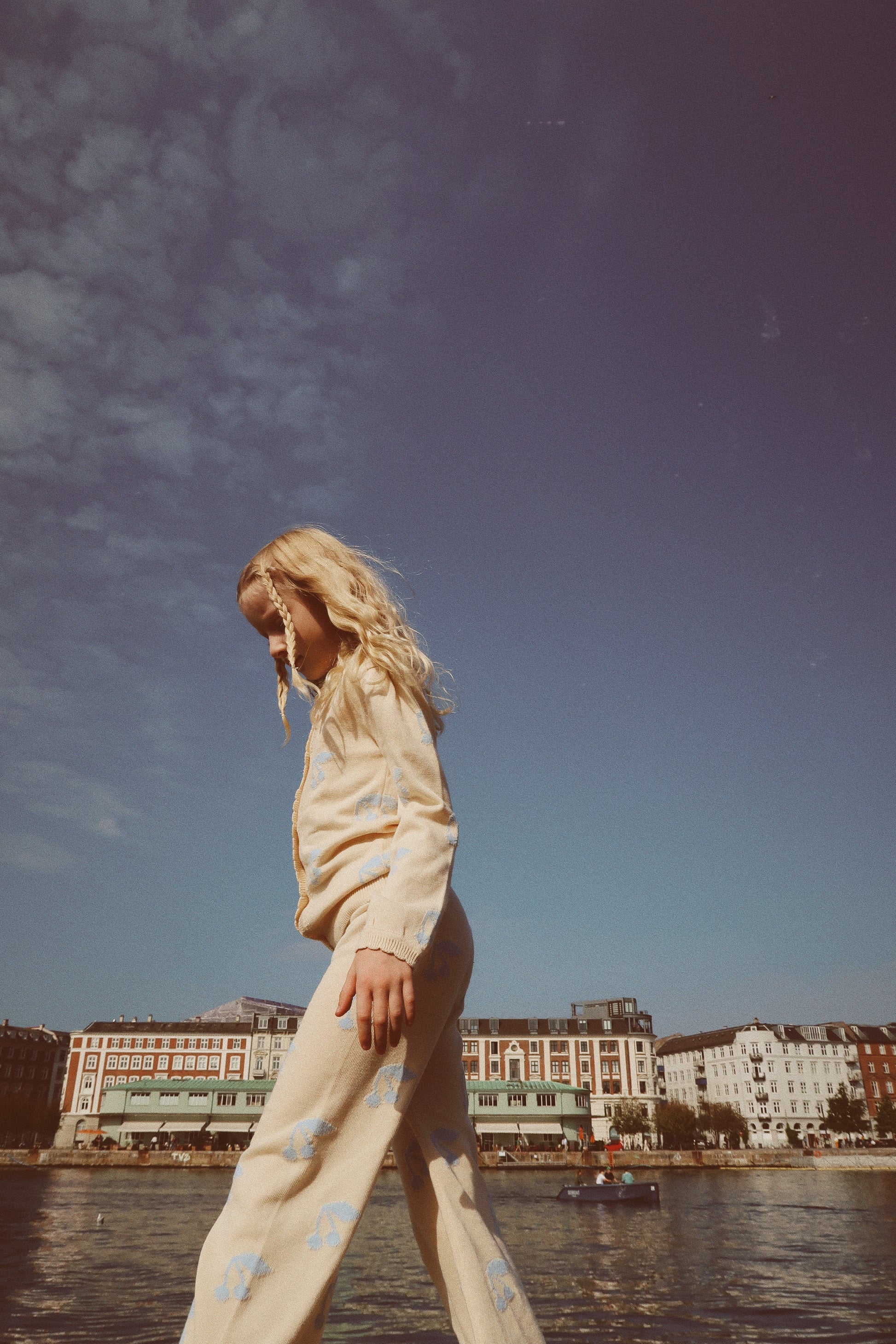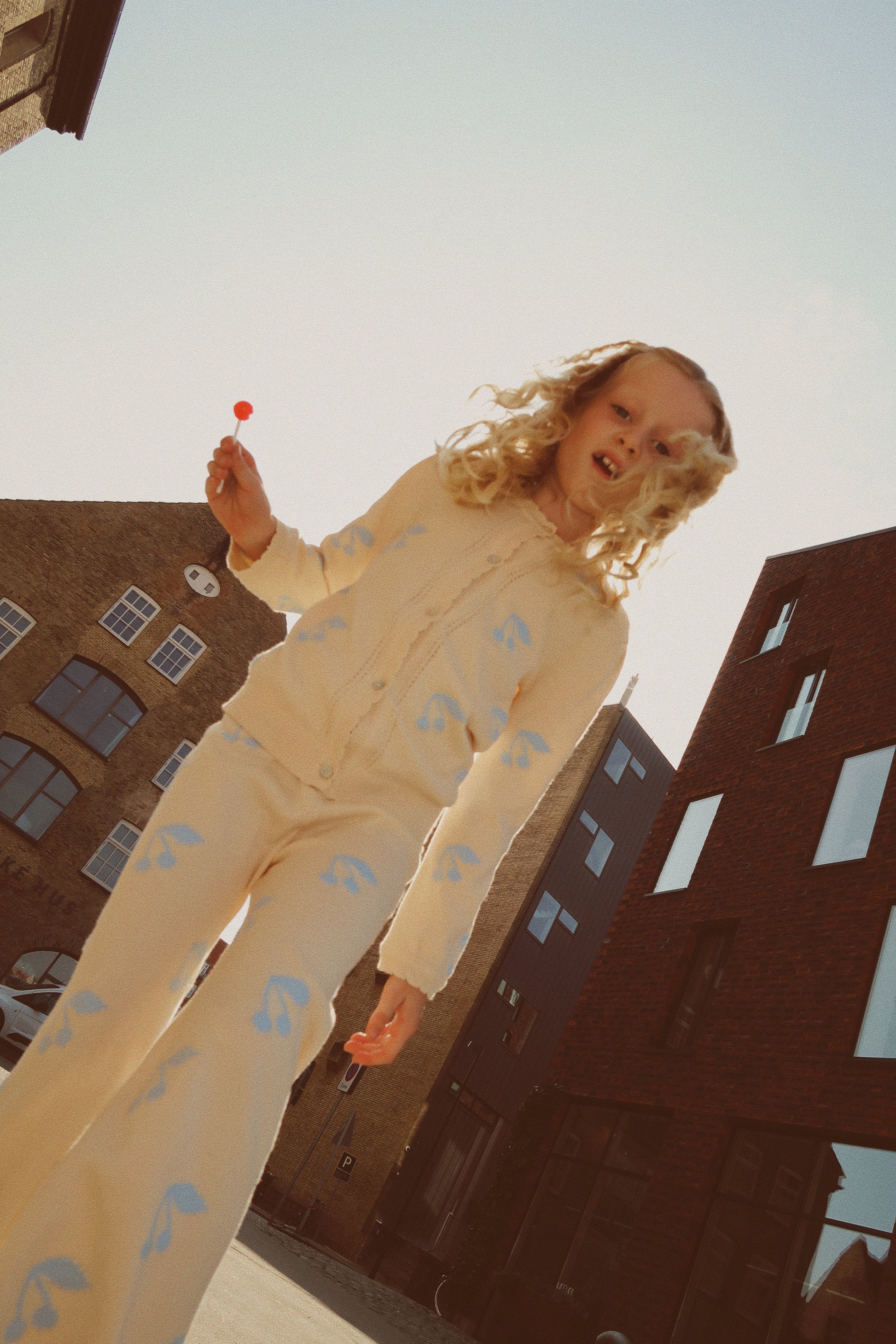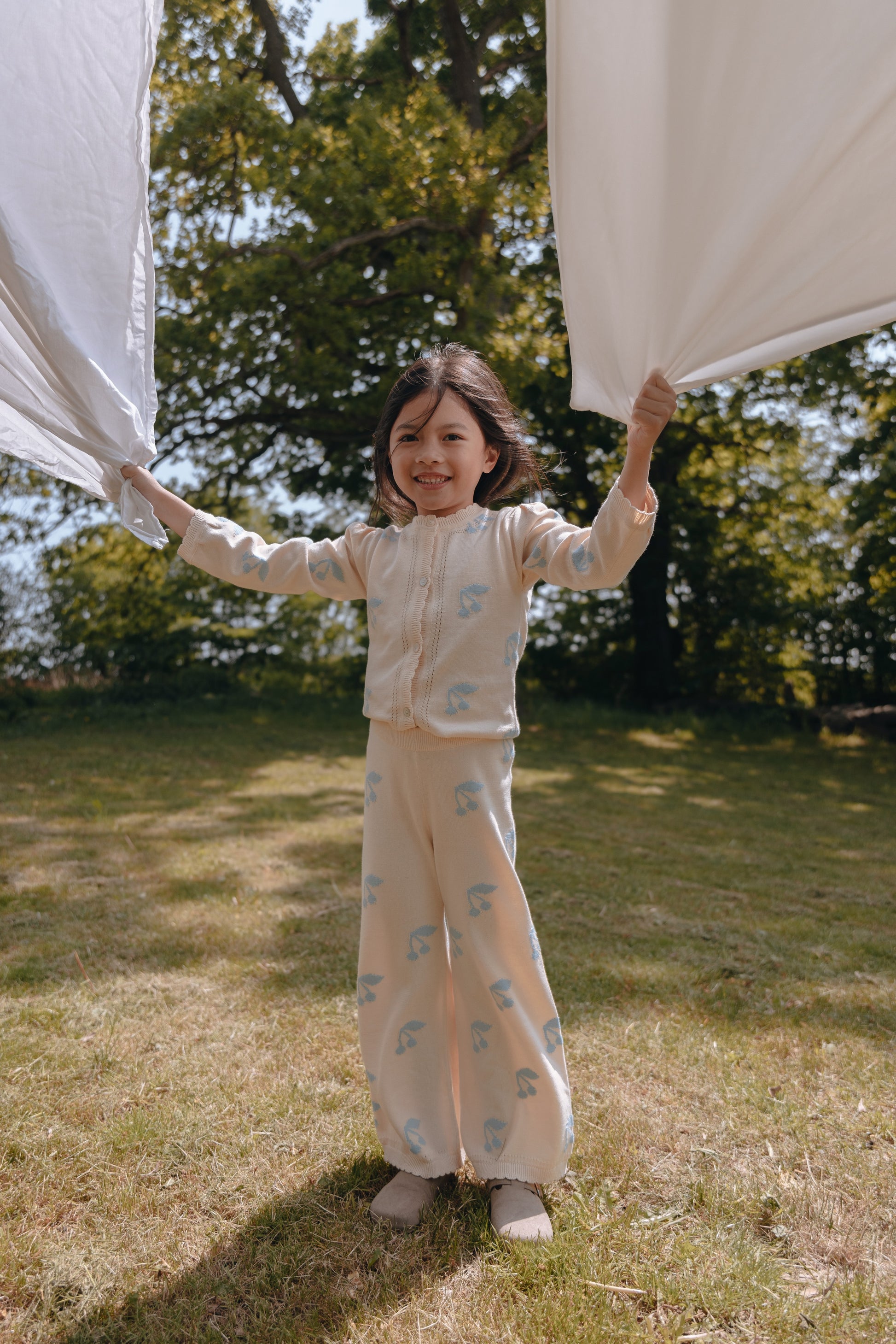 Harper pants are made of knitted soft organic cotton. Featuring an elastic waistband, and scalloped leg hem with pointelle details.