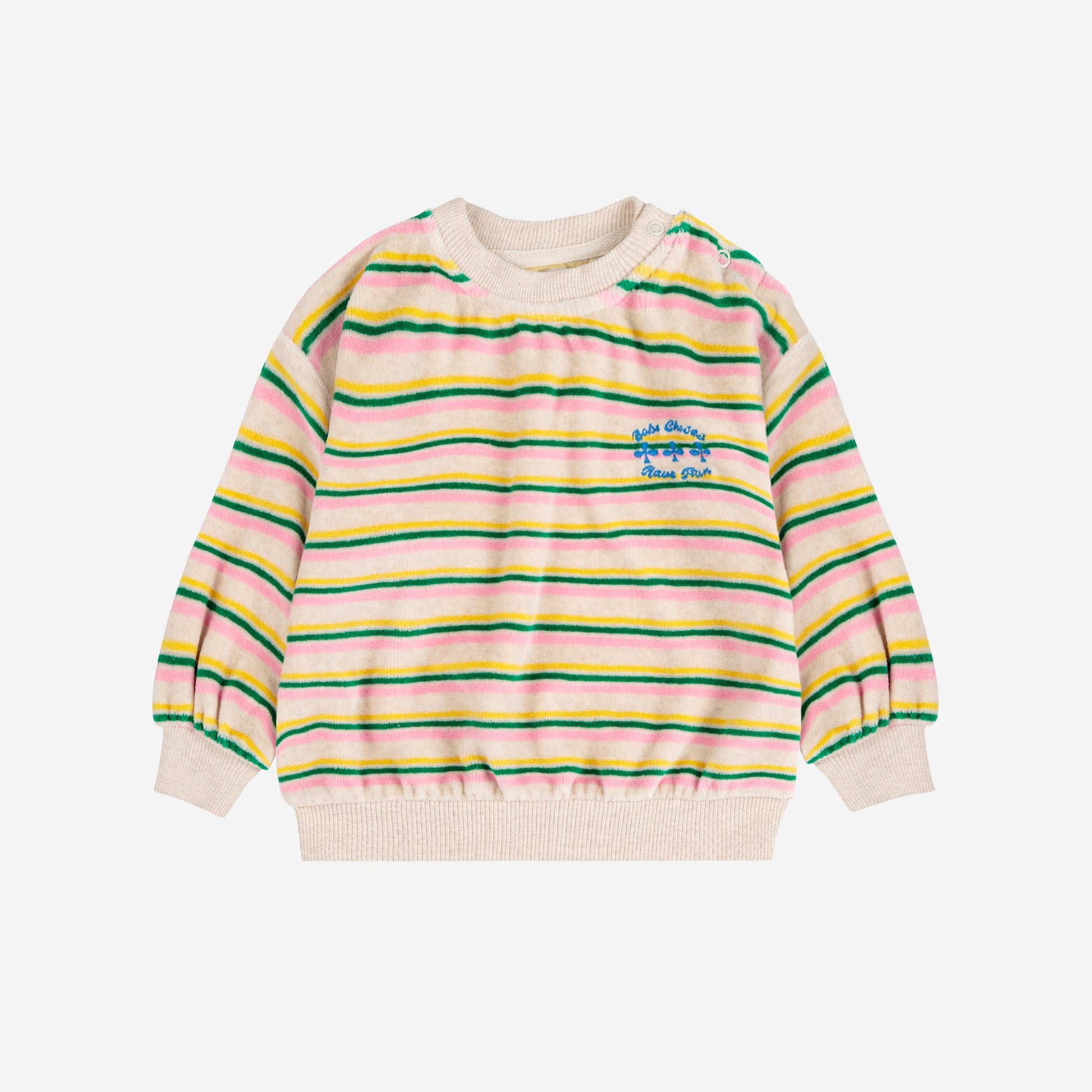 Multicolor sweatshirt. Designed with long sleeves, dropped shoulder, shoulder snap fastening, ribbed cuffs, embroidery, loose fit, ribbed bottom, round neck and velvet. Made in Spain.