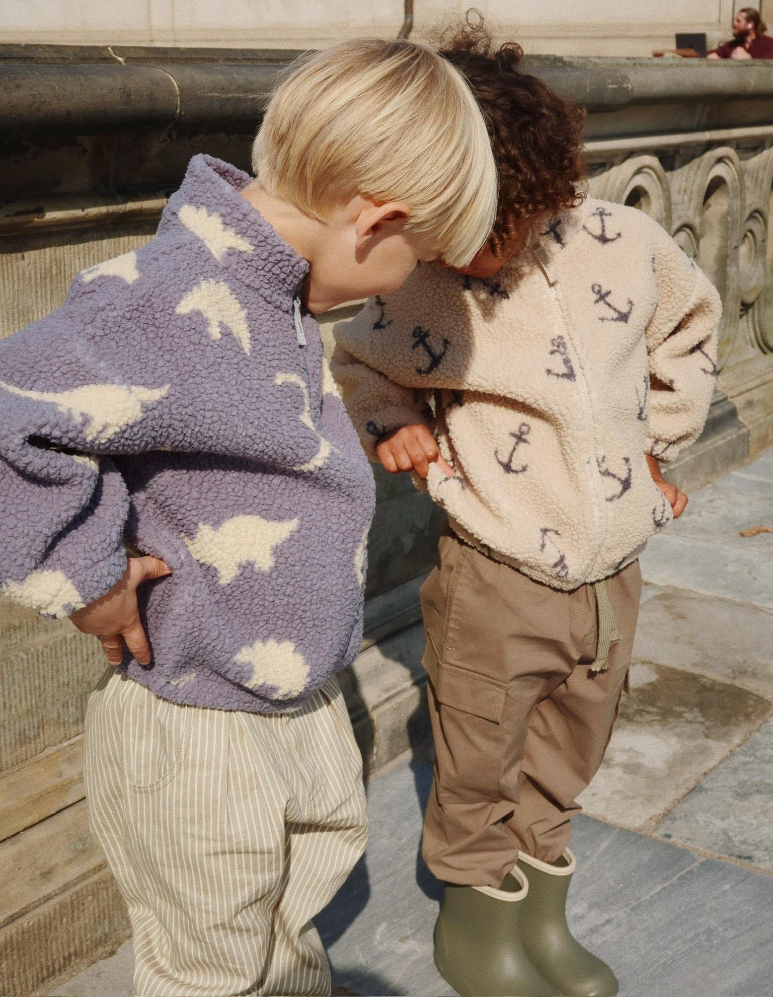 Warm pile jacket with soft inside fleece. Features a high collar and elasticated cuffs, as well as a full zipper closure in front that makes it easy to put on.
