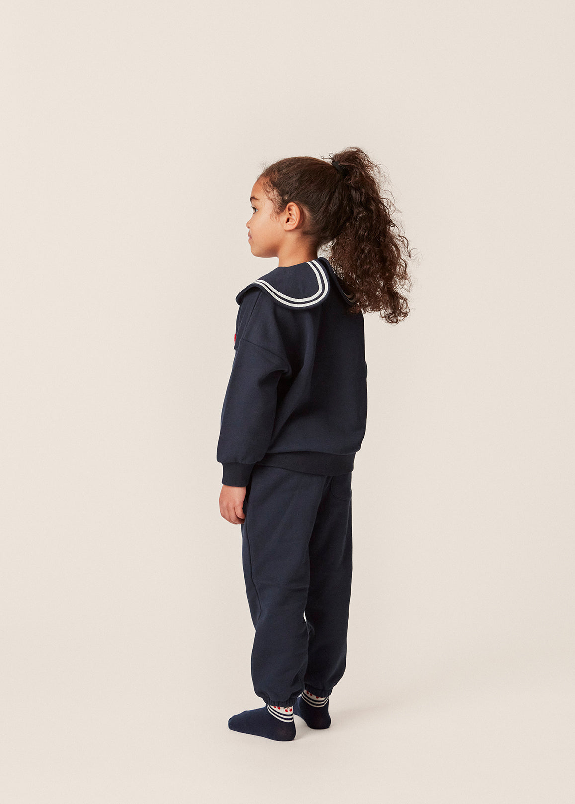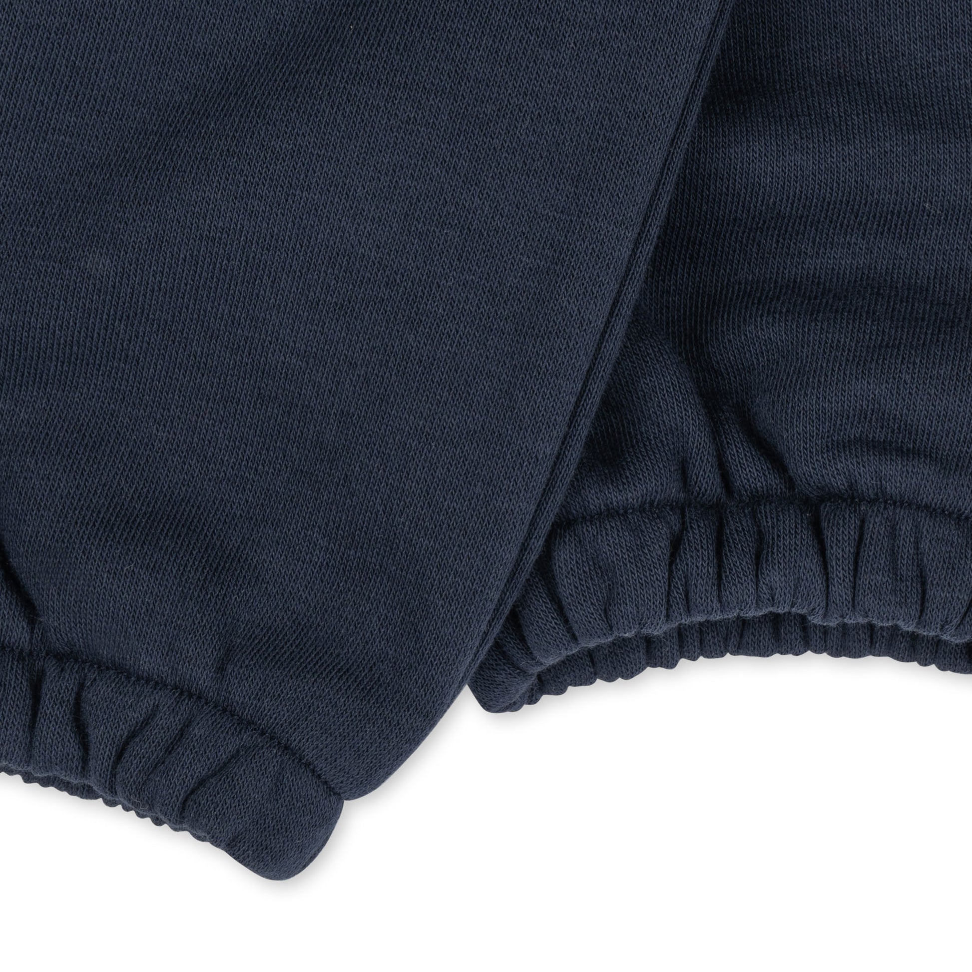 Soft sweatpants made in 90 percent organic cotton and 10 percent polyester. Designed with an elastic drawstring waistband, ribbed cuffs at the bottom, two front pockets and one back pocket.