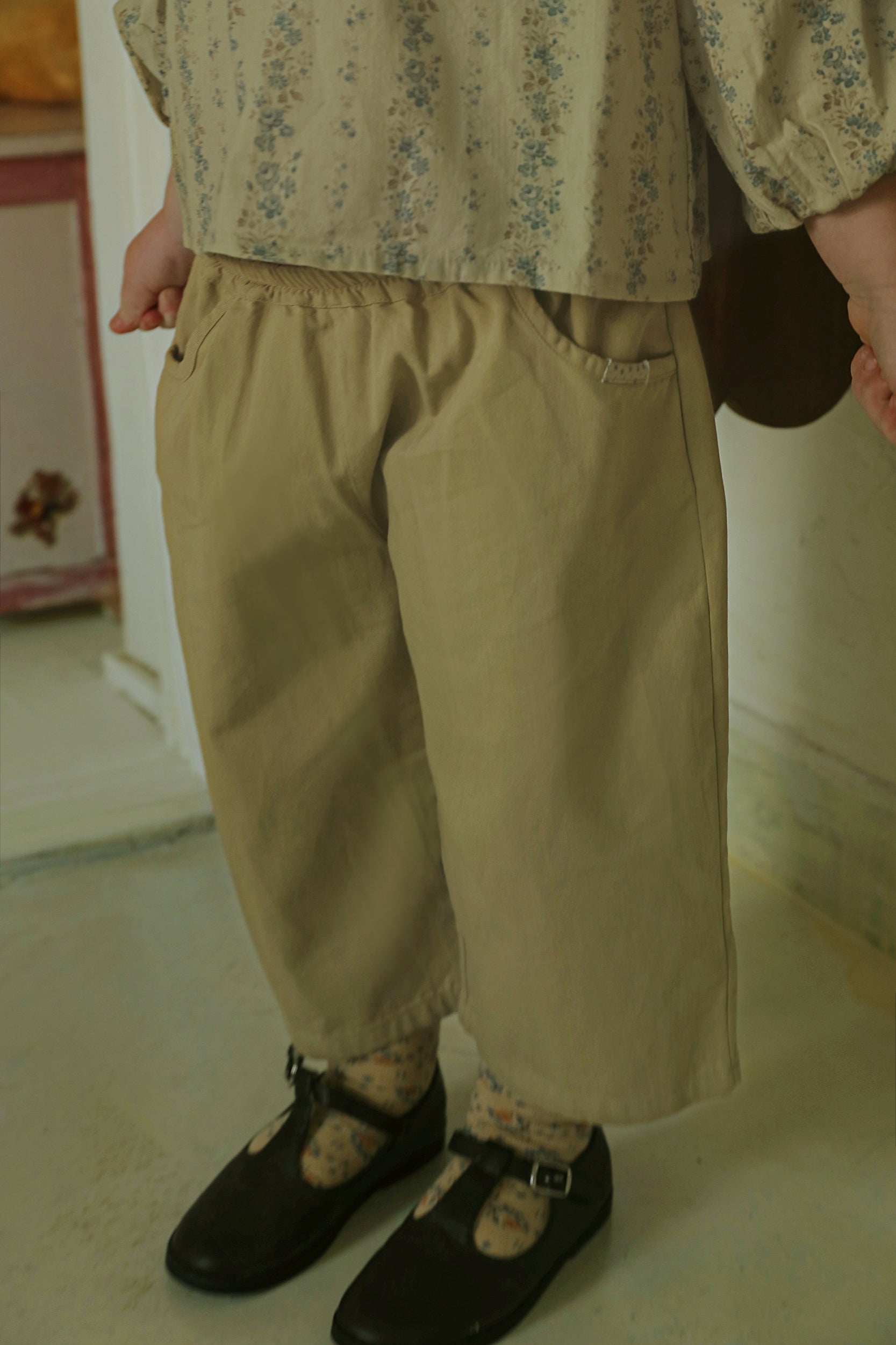 Gender-neutral, relaxed-fit pants made with soft cotton twill fabric and comfortable elasticized waistband.