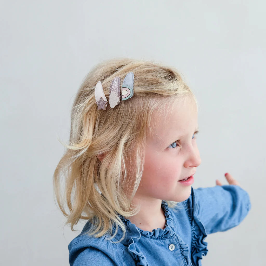 Float away with our adorable Daydream mini clic clacs! These seriously sweet little clips are sure to stay put in even the finest hair while they're running around with their head in the clouds!