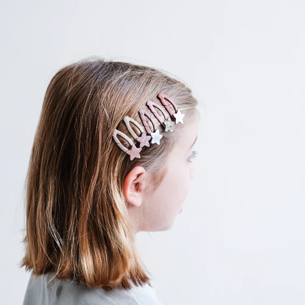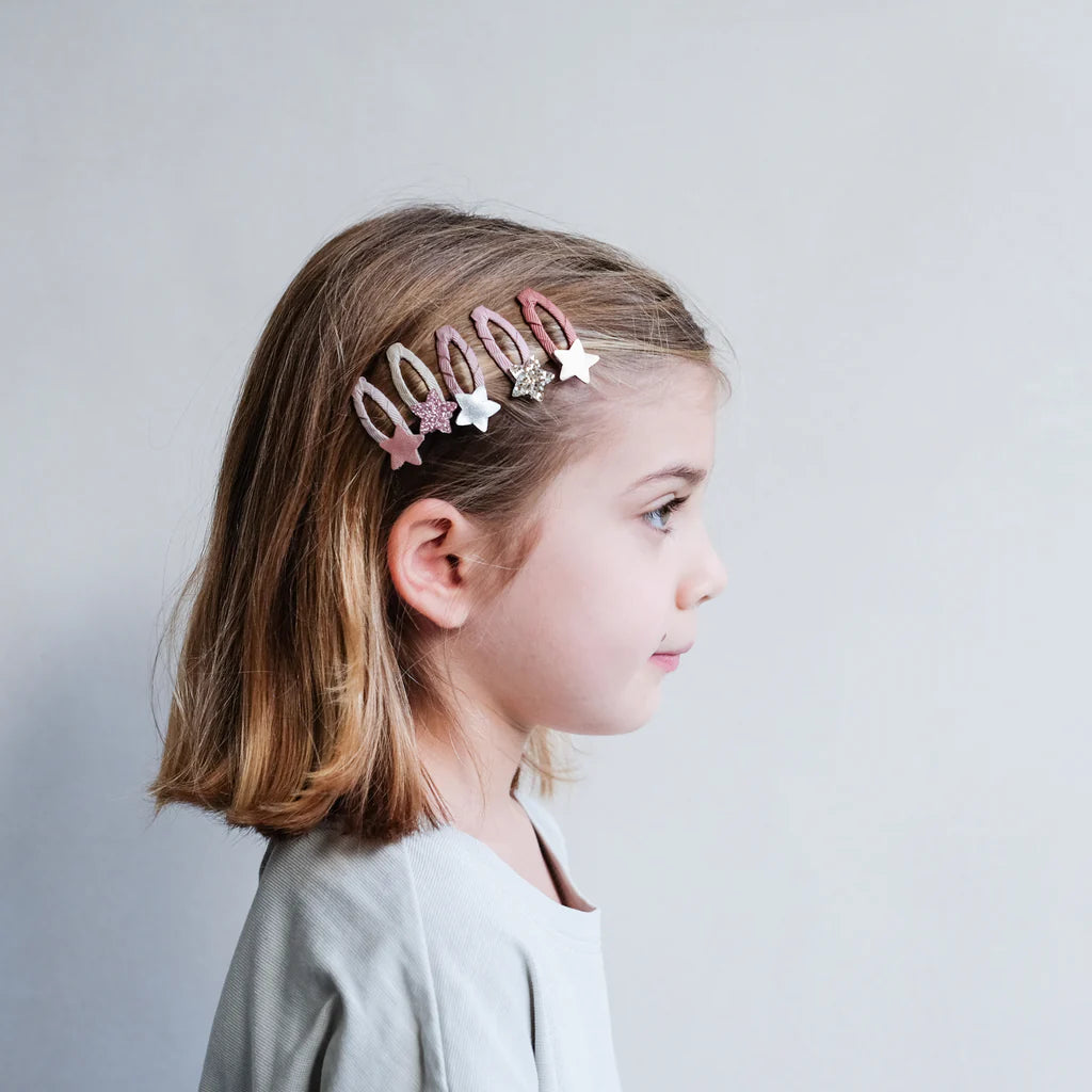 For all the little star gazers! The prettiest pack of mini clips in a dreamy palette of blues, lilacs, gold and mixed glitter for that all important sparkle! Perfect for little ones with thinner hair!