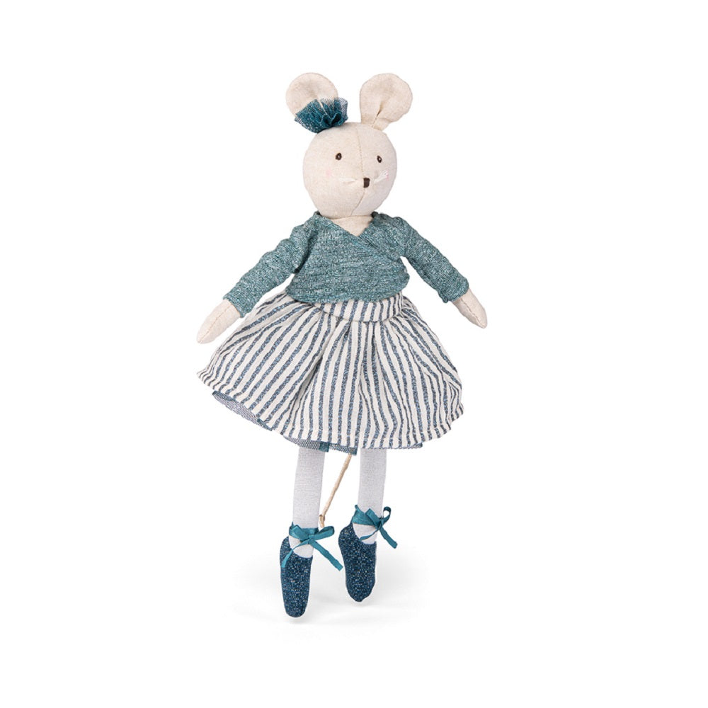 Charlotte, a little chambray plain-weave fabric mouse toy with a sweet embroidered face and delicately powdered cheeks. She is pretty in blue and all kitted out in her dancing gear. The perfect friend for sharing magical moments!