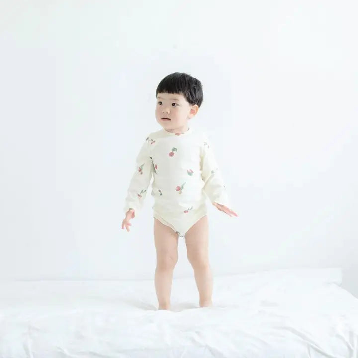 Organic Cotton Long Sleeve Onesie, Berry Garden