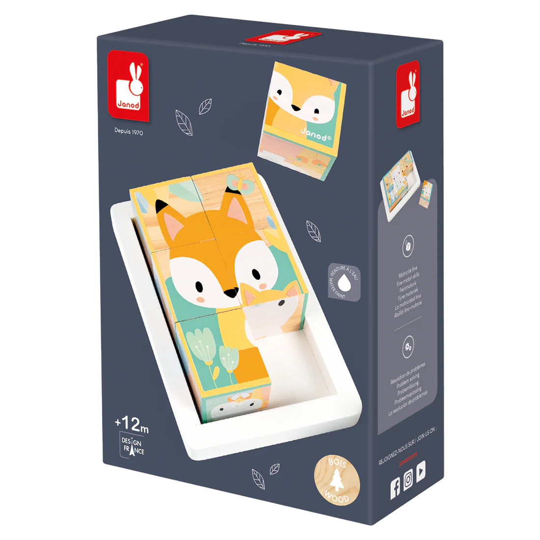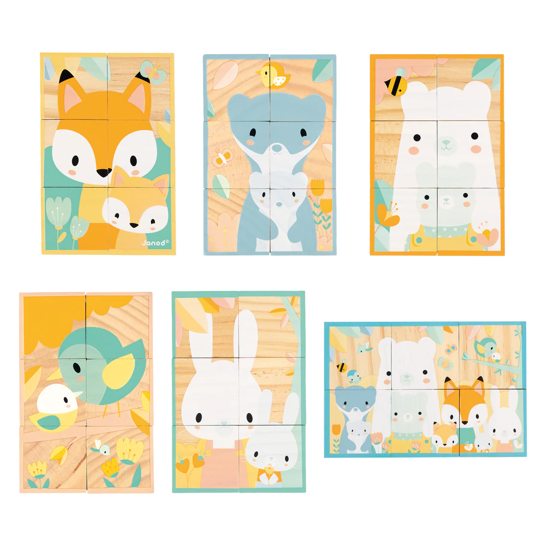 He or she can discover 6 animal portraits with their babies, each cuter than the next: bear, fox, rabbit, weasel, deer and a scene where they are all together. Thanks to this construction game for babies, children will be encouraged to develop their coordination, their sense of observation and their visual memory.