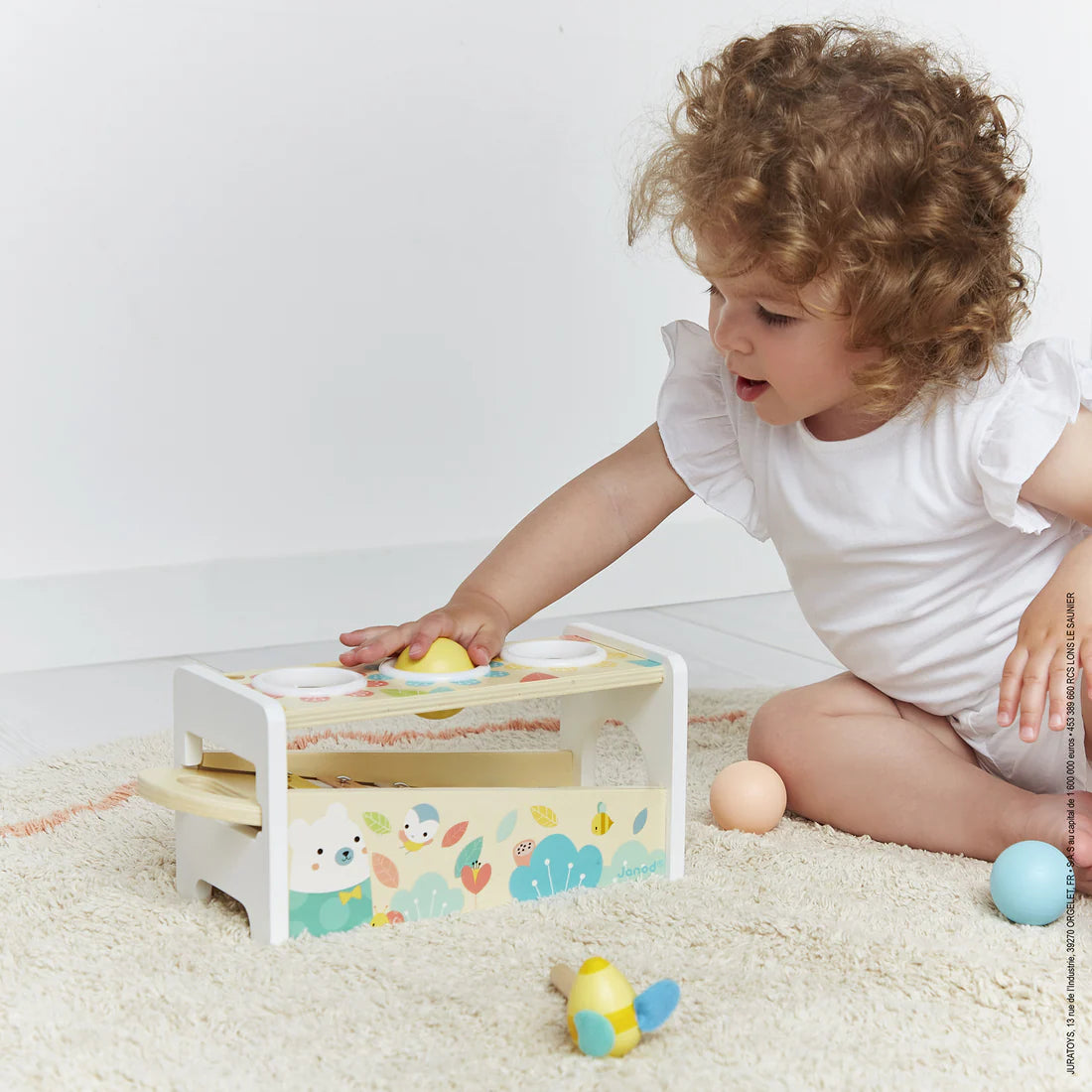 Children will be able to learn about colours by placing each ball on the right colour hole. They will awaken their senses, imagine and create their first stories.