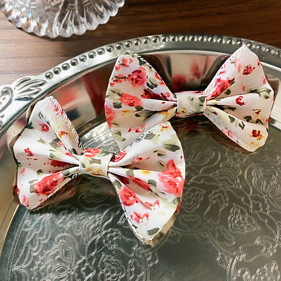 A soft pink floral bow from the Vintage Blossom Collection — crafted to celebrate florals, nostalgia, and handmade charm, and perfect for sunny days, giggles, and tiny adventures.