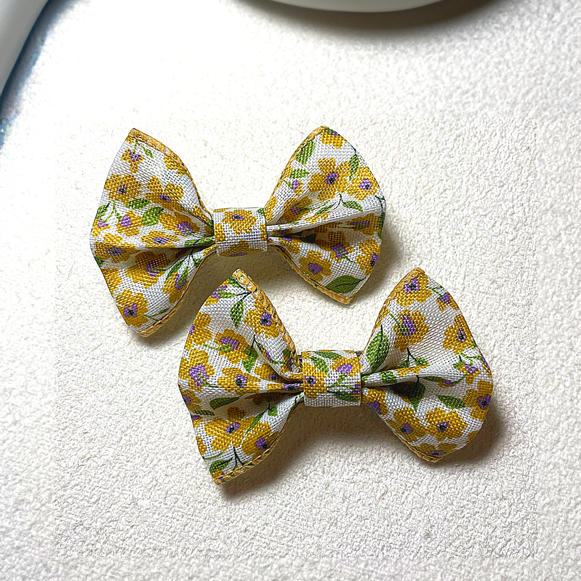 From the Vintage Blossom Collection, this bow is adorned with soft yellow florals and leafy greens, and set on an alligator clip for comfort and charm.