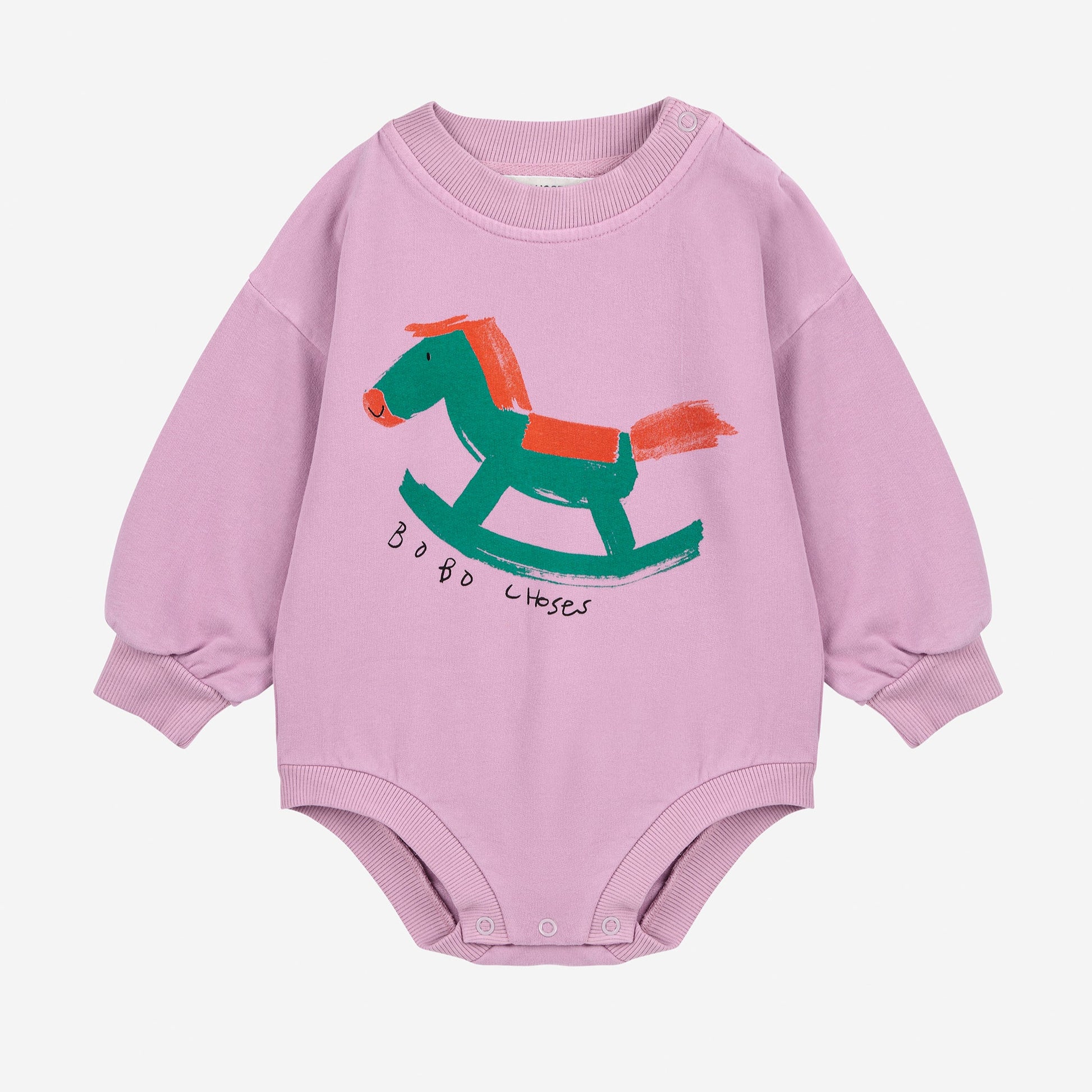 Lavender body. Designed with shoulder snap fastening, crotch snap fastening, ribbed cuffs, loose fit, ribbed bottom, round neck and fleece. Made in Spain.