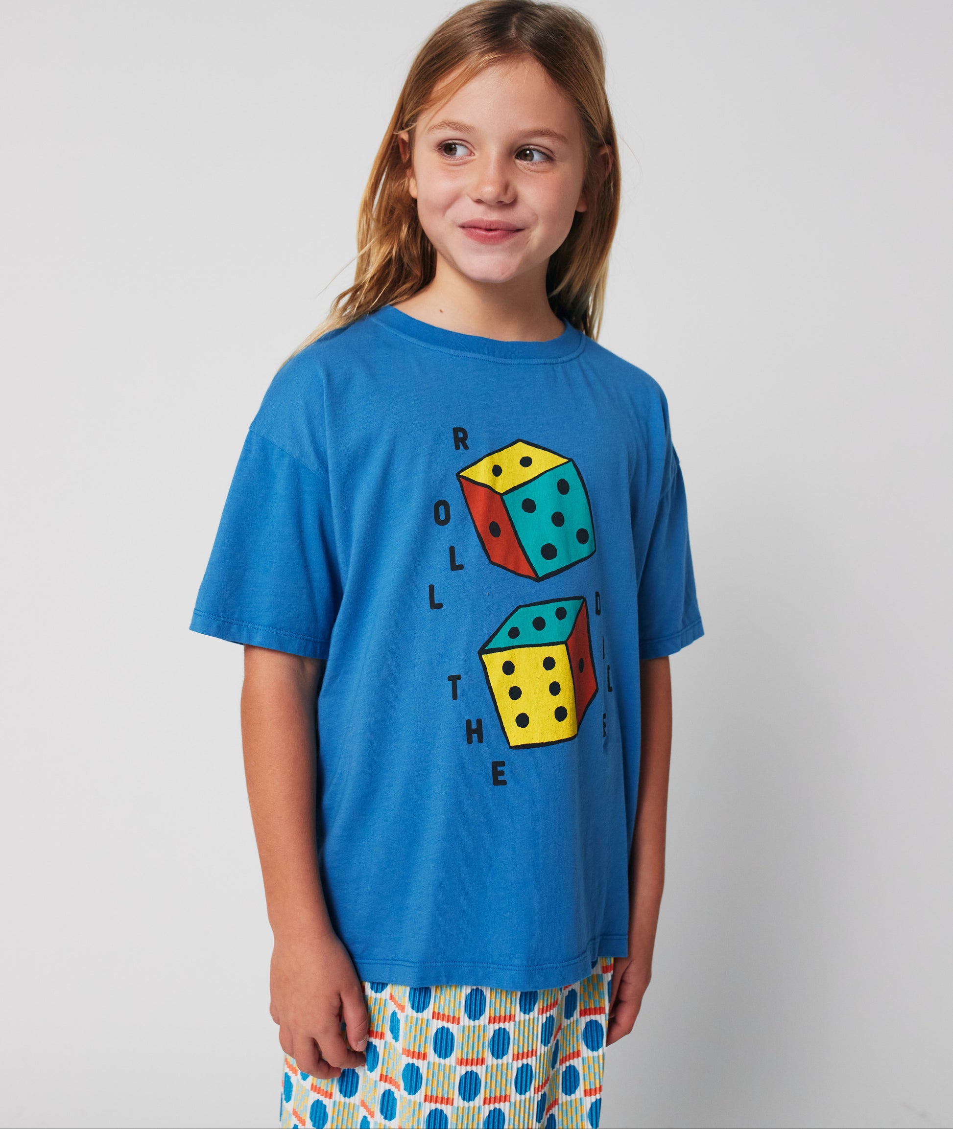 Blue T-shirt. Designed with short sleeves, loose fit and round neck. Made in Portugal.