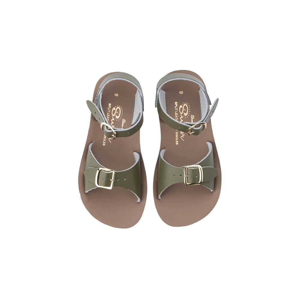 The Sun-San Surfer is a classic two-strap sandal that’s perfect for younger feet. An adjustable toe buckle and ankle strap make them great for both wide and narrow feet. Wear them comfortably all day long — thanks to the lightweight, cushioned urethane sole. Rust-proof brass buckles and scuff-resistant water-friendly genuine leather make them ideal for in-and-out-of-water wear. They clean up so easily and with proper care, they will last for years.