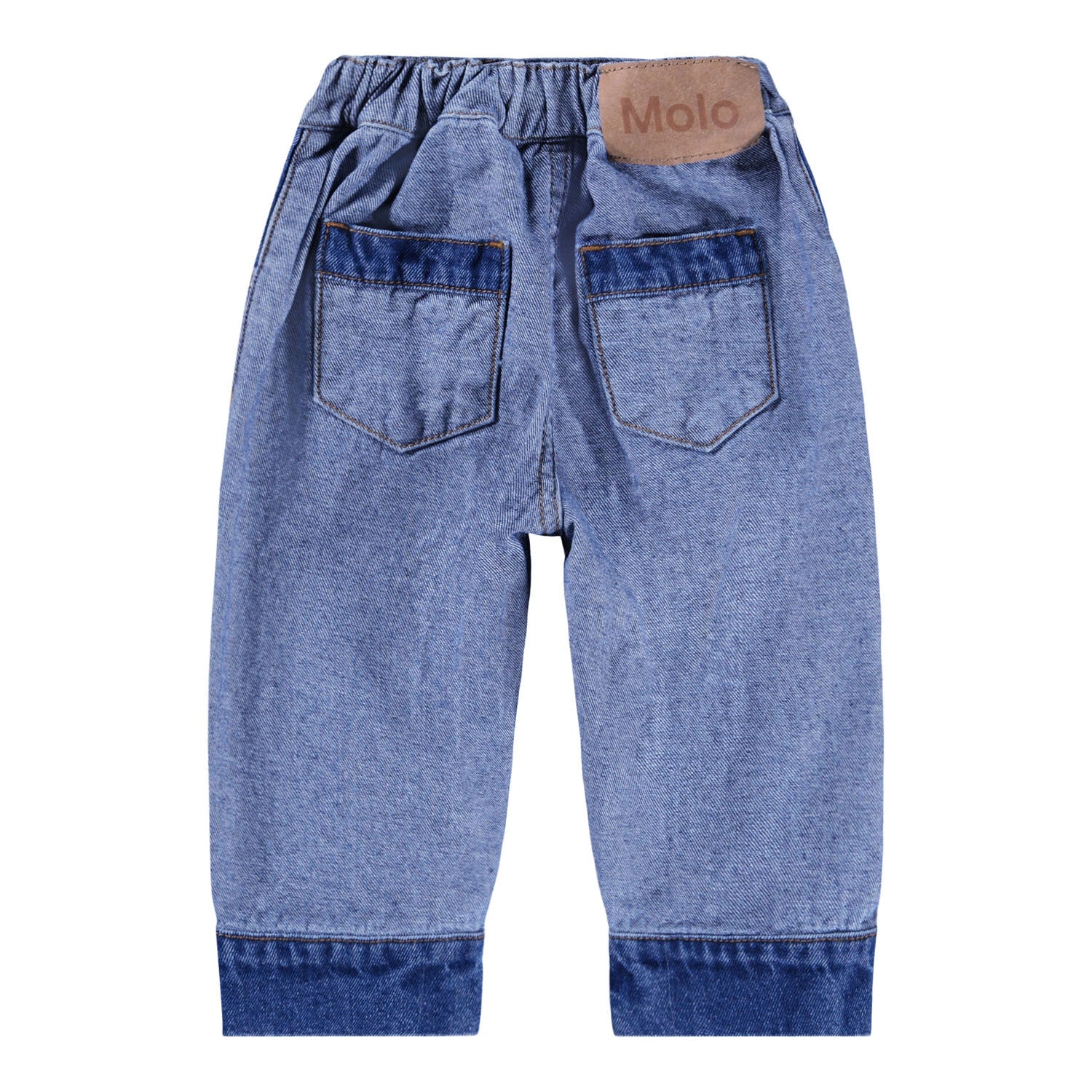 Blue jeans for the little ones made of stretchable soft cotton denim. The jeans have a loose fit, a button and zipper closure, pockets and an internal adjustable elastic for a good fit.