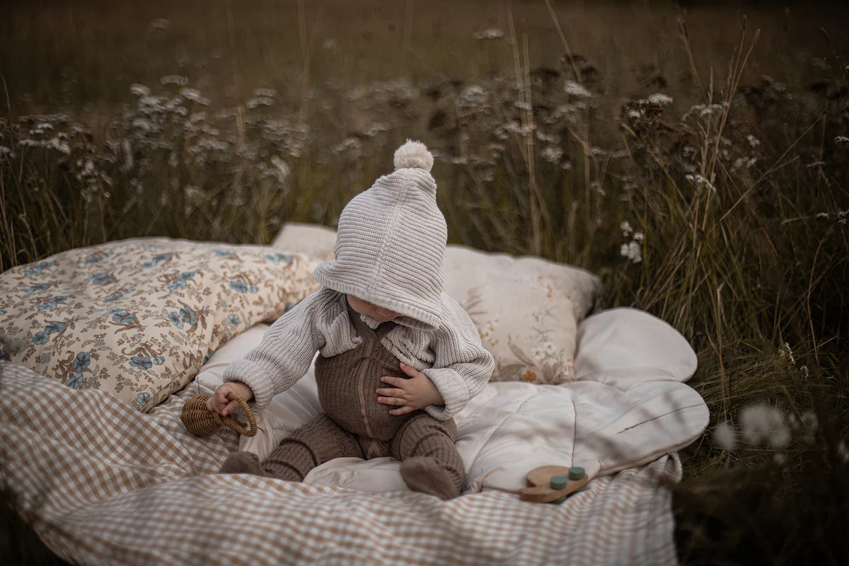 A soft mix of brown, grey, and beige forms a beautiful cocoa tone that adds warmth and depth to any little outfit.