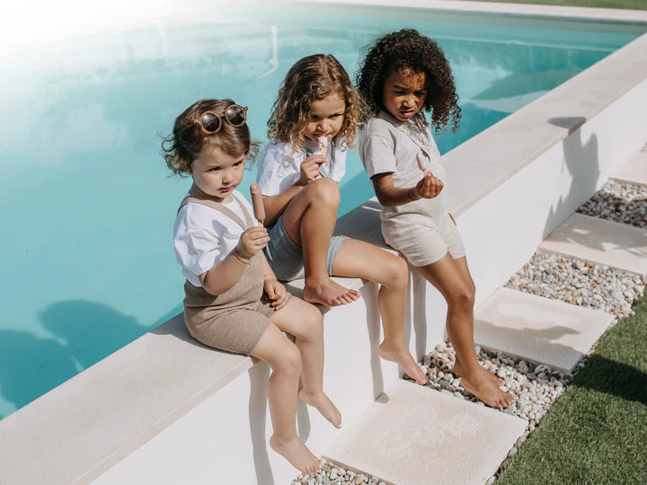 These unique shorty tights with braces will keep pace with even the most active babies and toddlers during any summer adventure.
