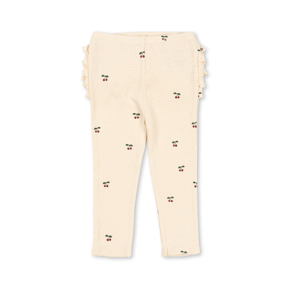 Soft cotton pants with frill details and a cpmfortable elastic waistline.