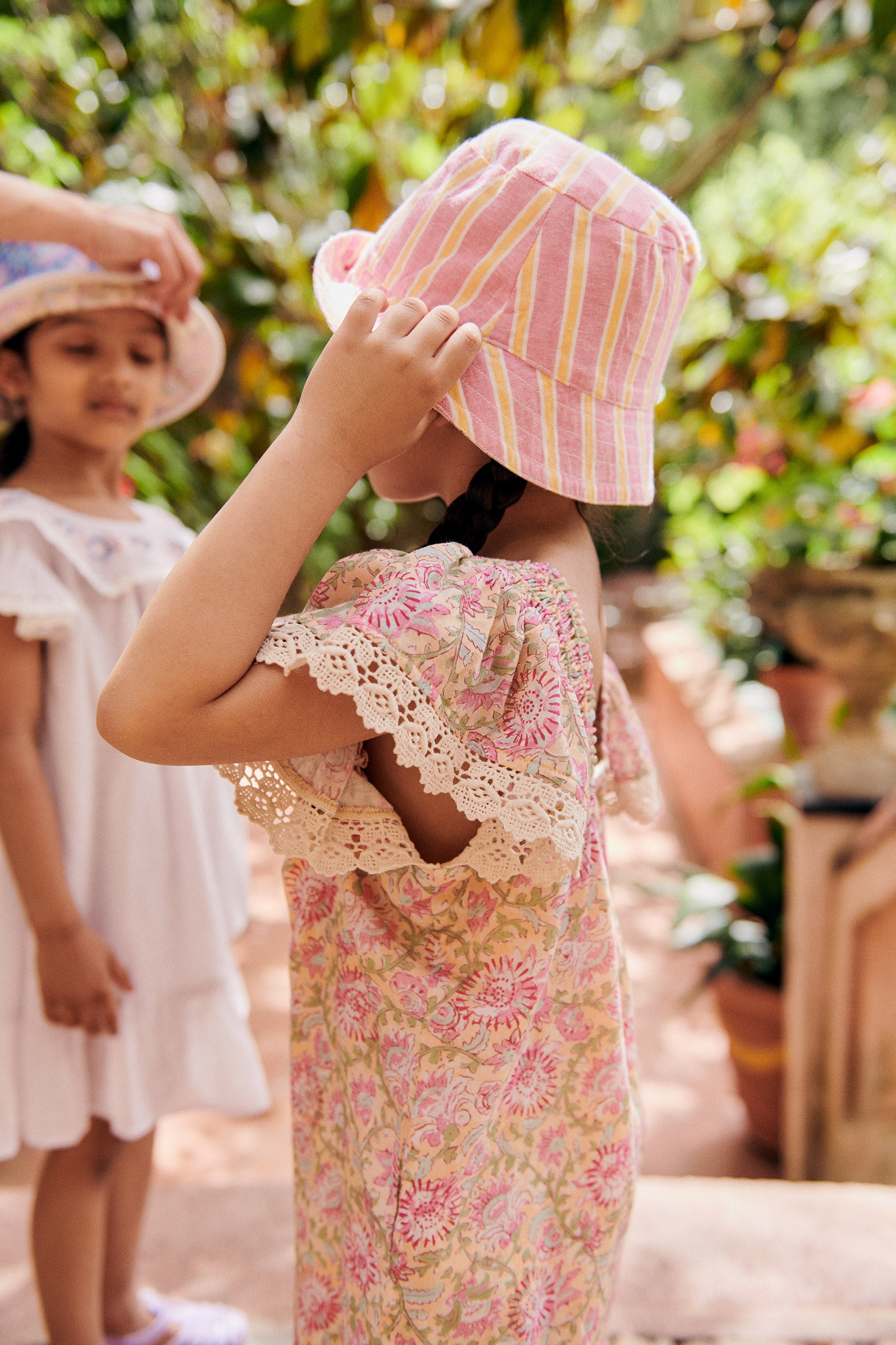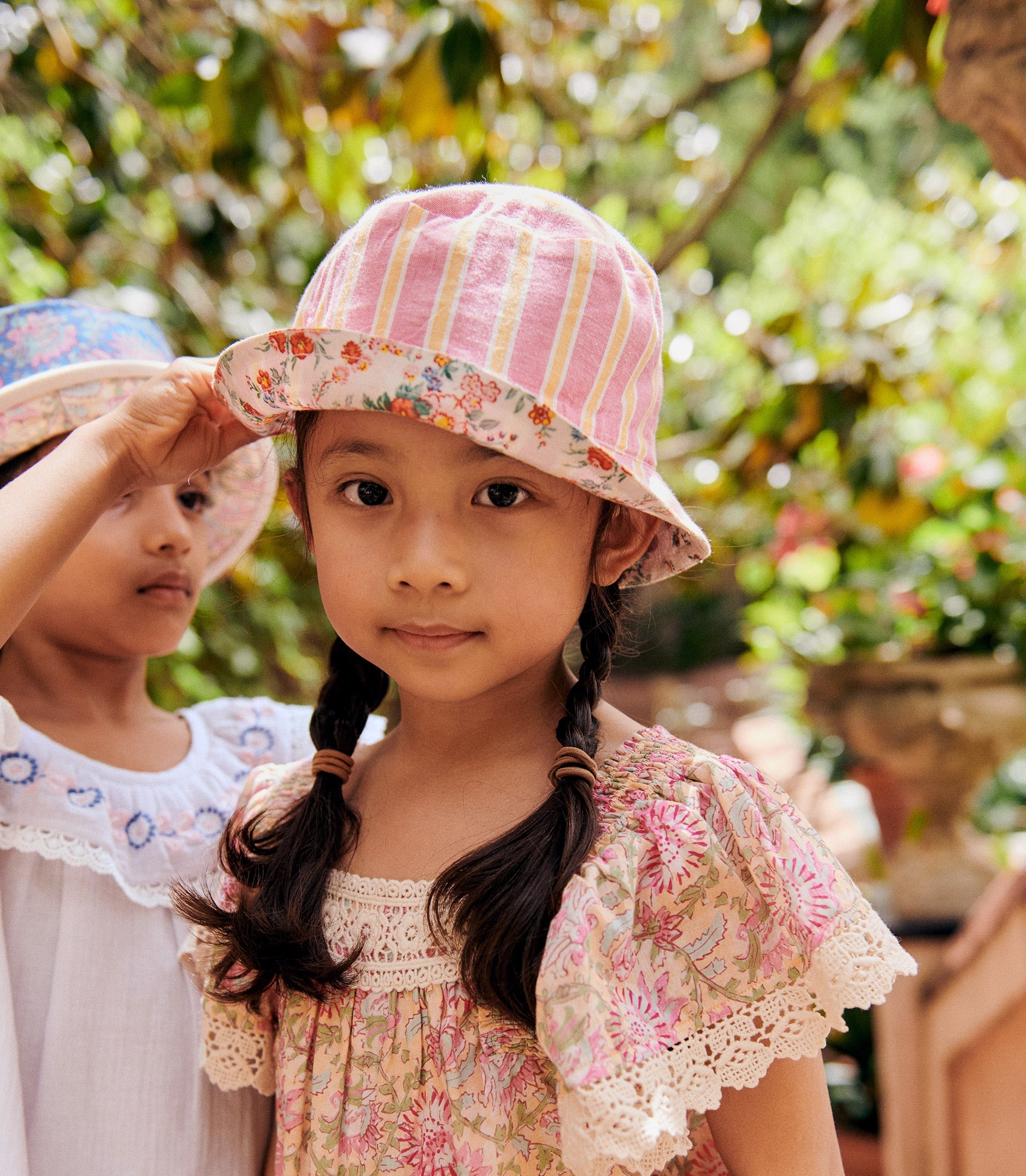 Please note: for sizes under 3 years, non-reversible with Velcro ties to fasten under the chin.