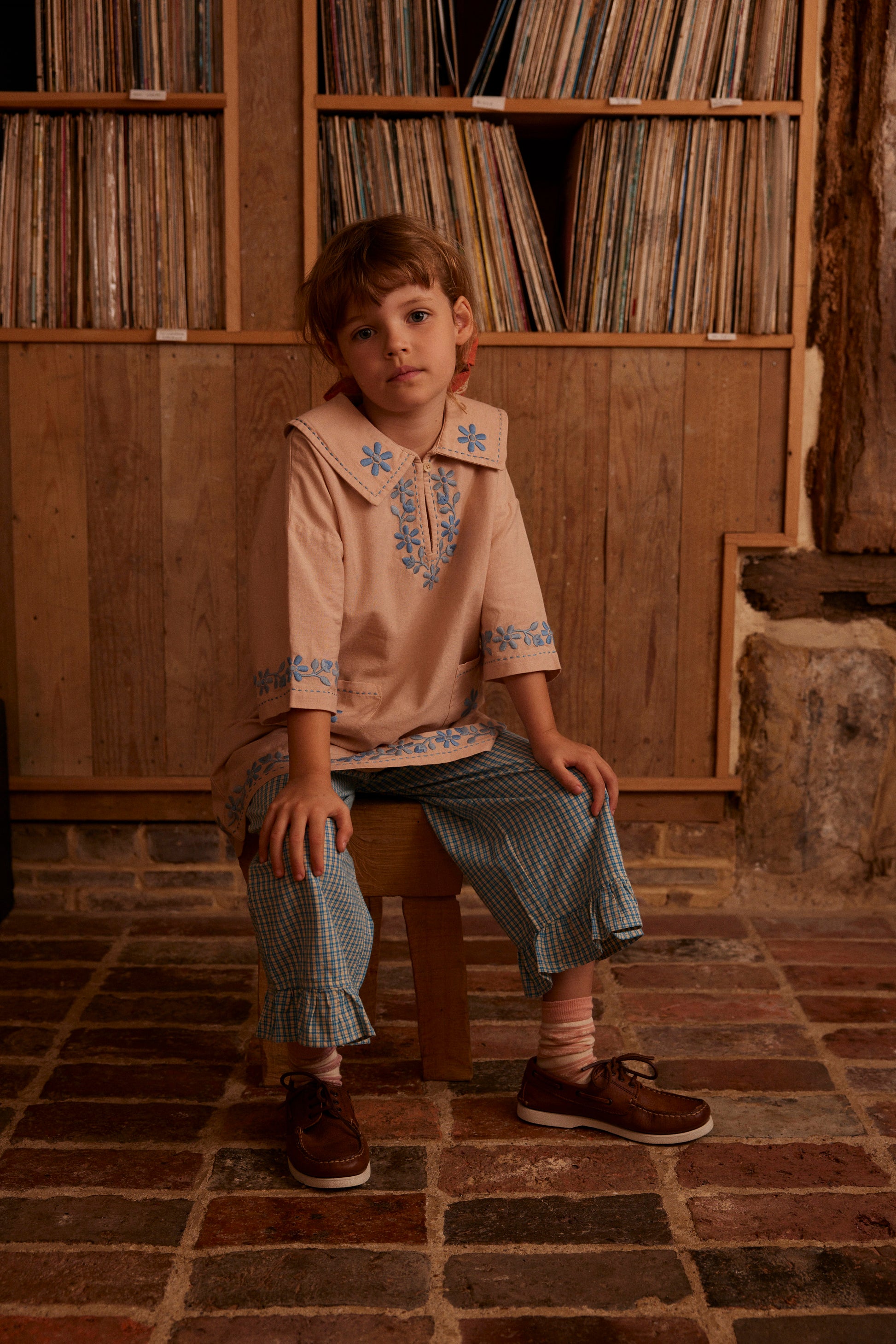The new style Thalia dress is an easy, pull on style with a relaxed fit. Inspired by ‘70s kaftans, Thalia brings a sweet vintage mood. Crafted in pink beige rustic cotton-linen with contrast native floral embroideries, patch pockets and keyhole fastening at front. We love Thalia paired with socks and boat shoes for modern, casual styling.