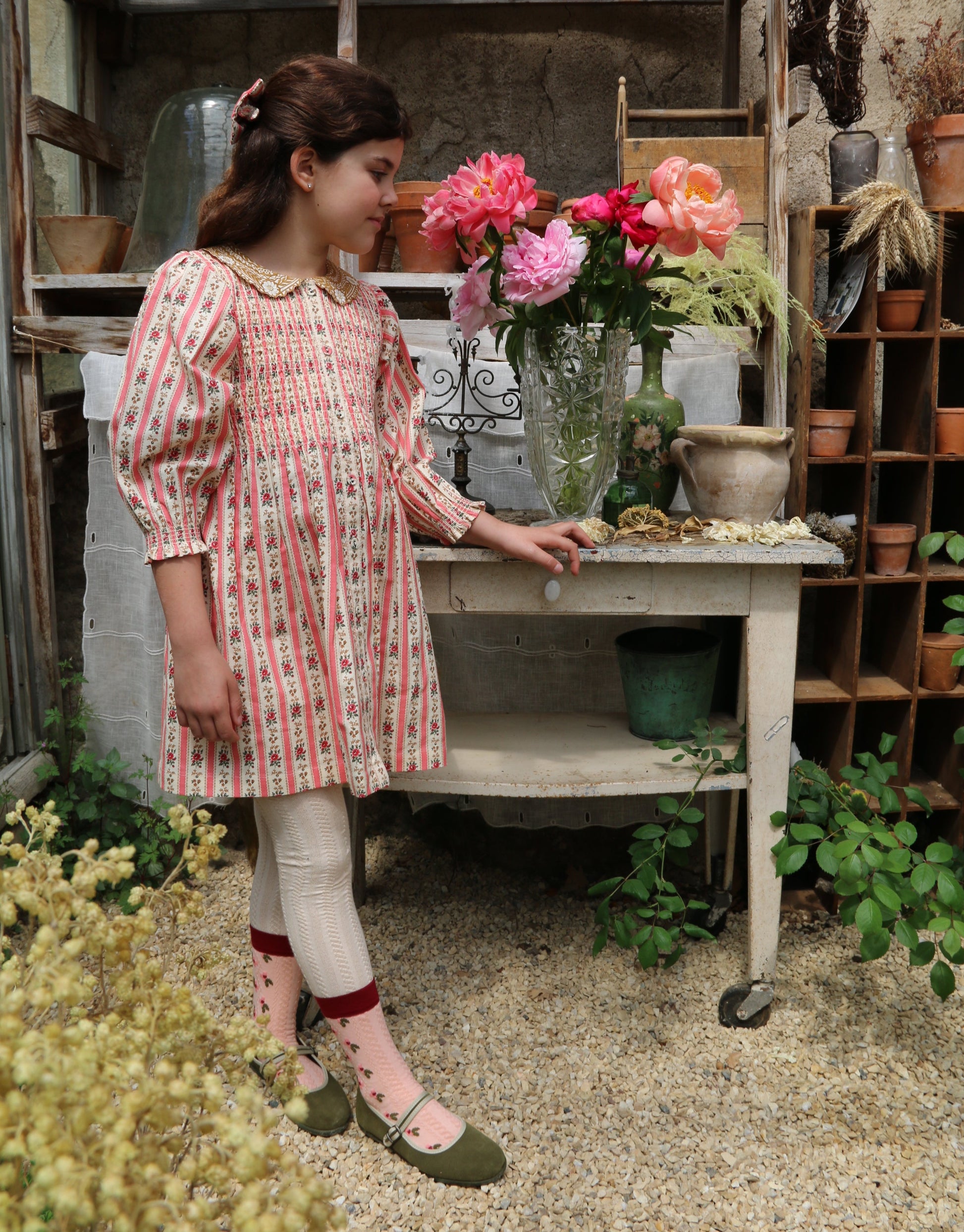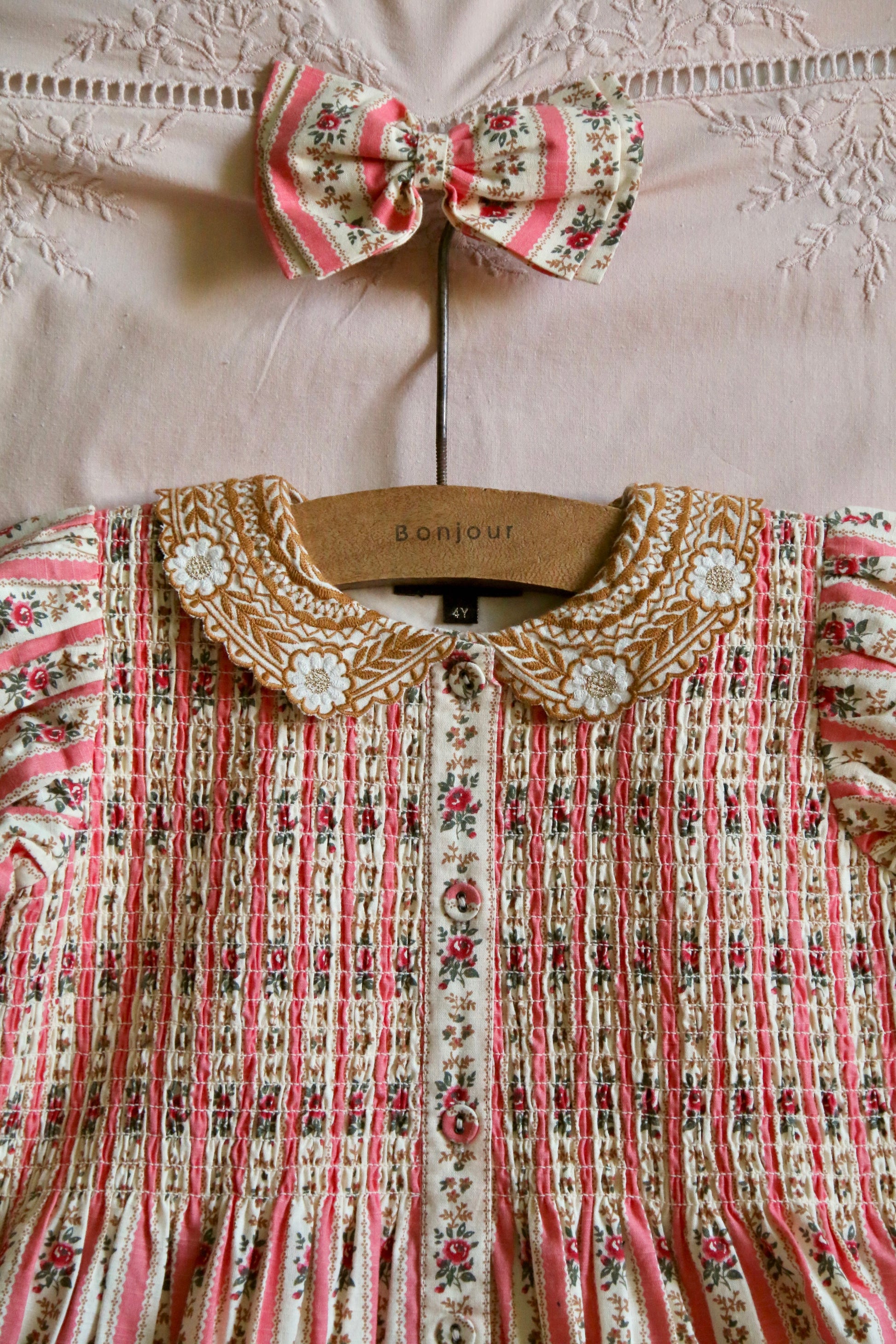 Bonjour AW25 : Tunique with Hair Clip, Tapestry Pink Stripe Print